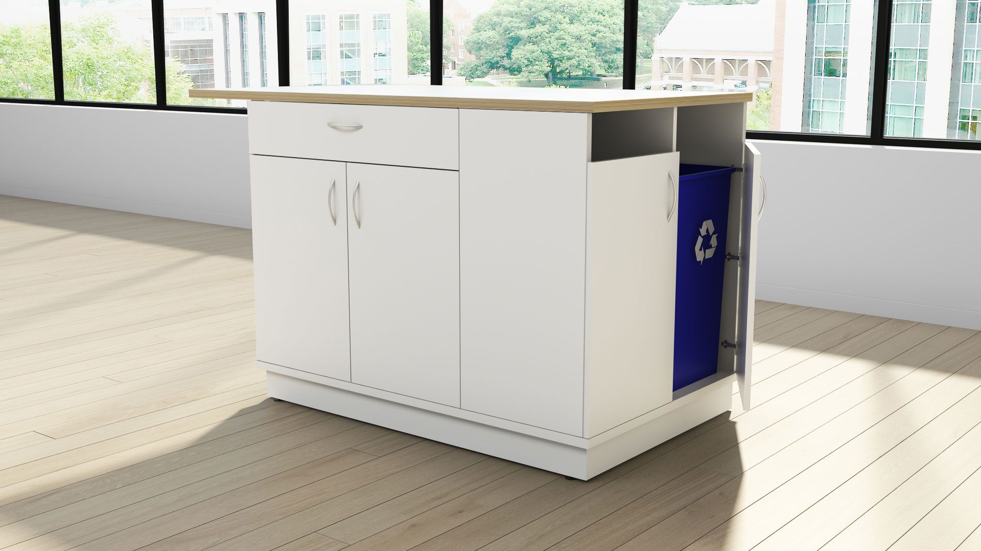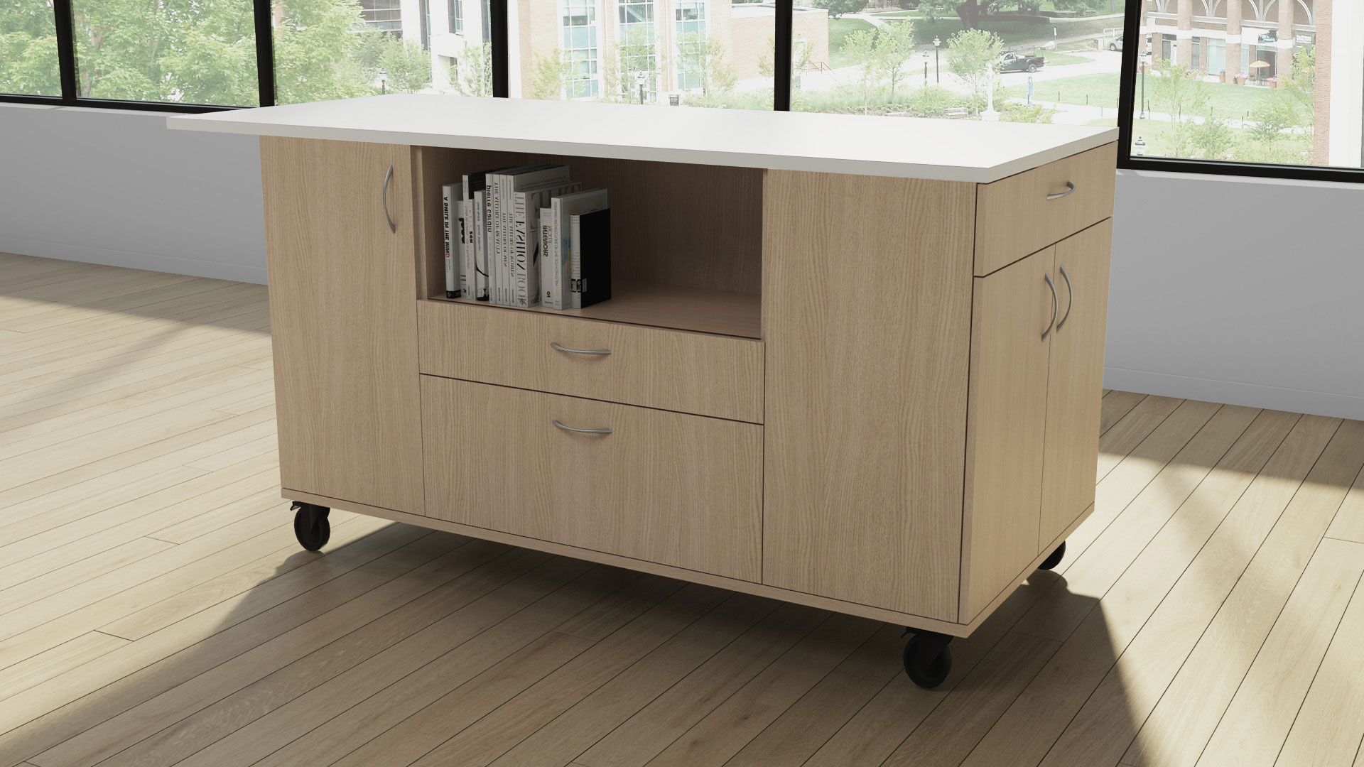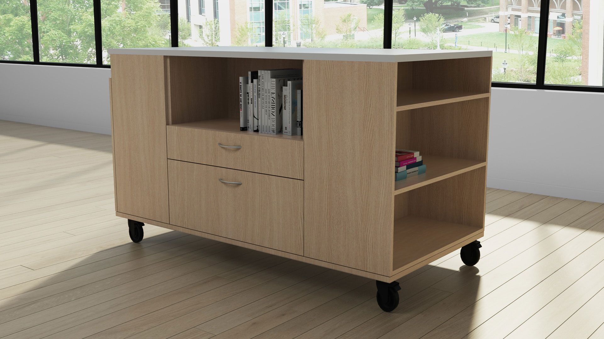 Catalina Work Islands storage solutions provide a modular approach to beautiful collaborative workspace essentials.