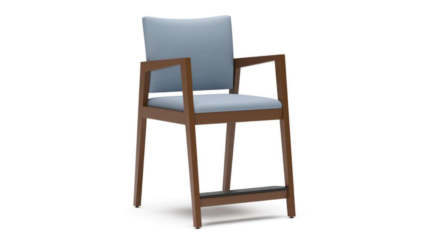 The Rein+ Patient/Easy Access Chair combines modern design with practical functionality, making it ideal for healthcare environments. Built with a sturdy European beech hardwood frame and mortise-and-tenon construction, this chair is designed for long-term use. Its clean-thru design ensures easy maintenance, while non-marring glides protect floors.