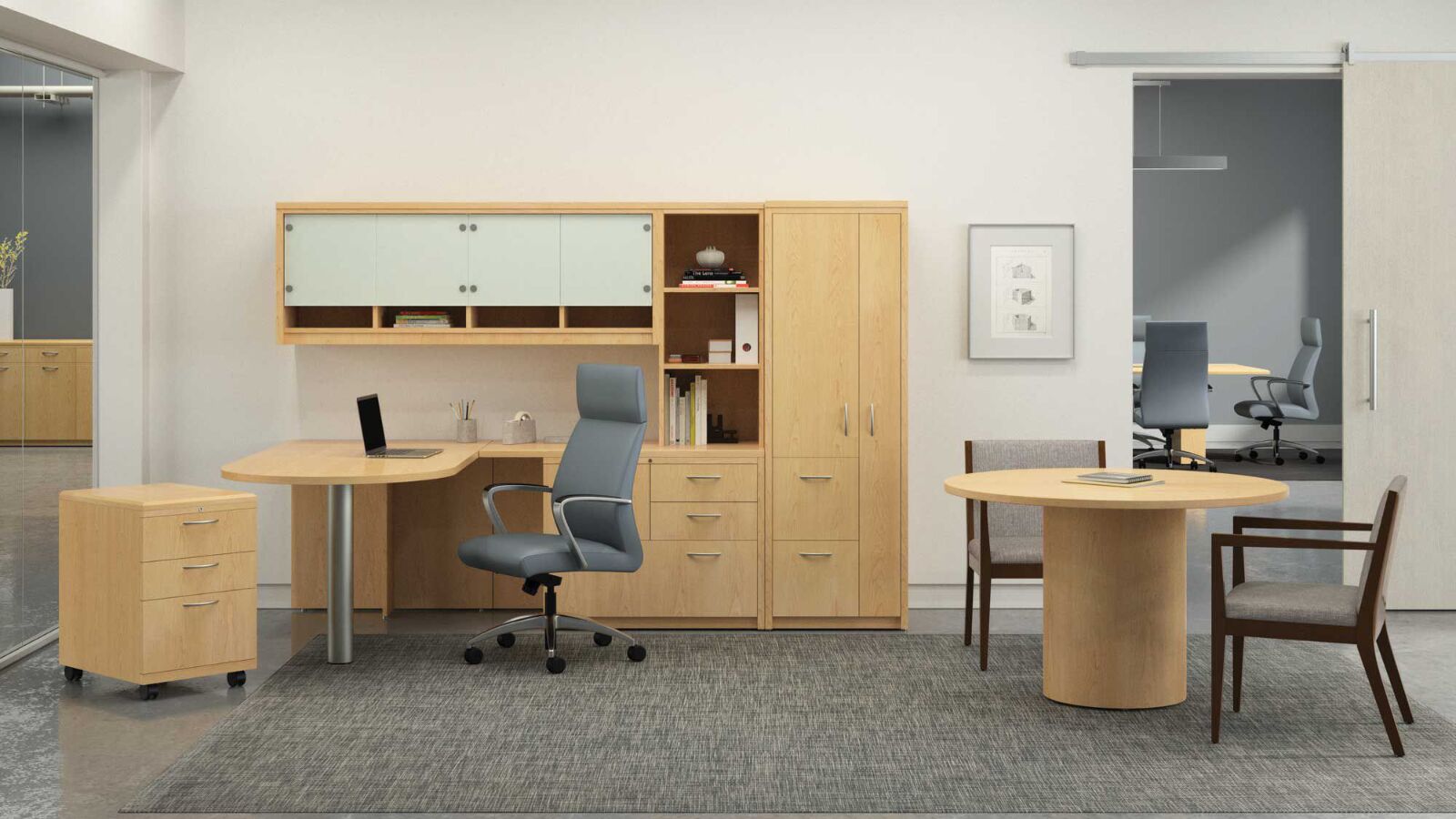 Finale Casegoods, where style meets function. Freestanding and wall-mounted configurations with a mix of materials, colors and storage offer flexibility to fit your work style for office, conference and lounge areas.
