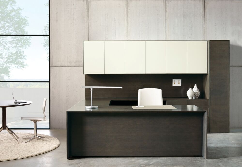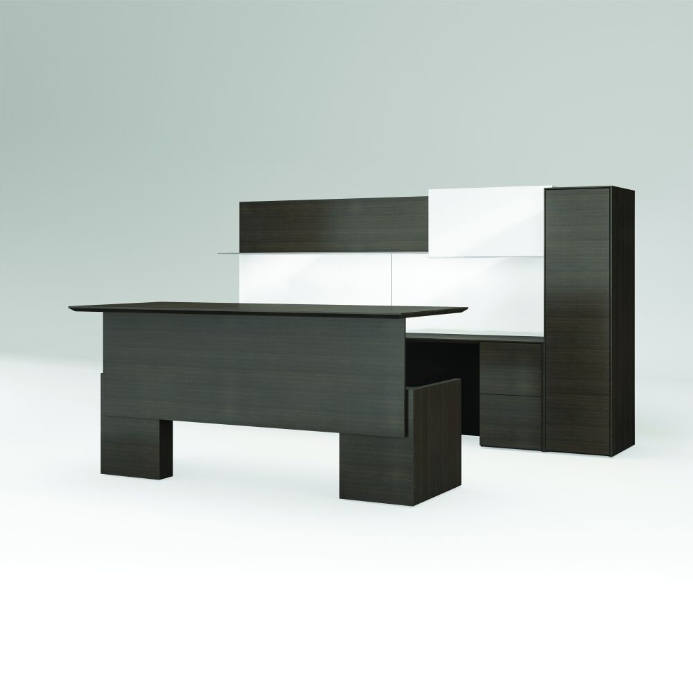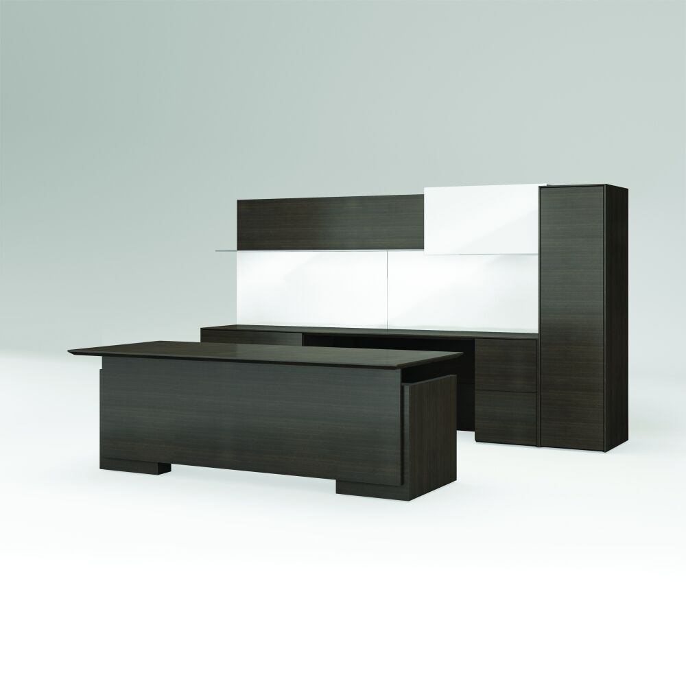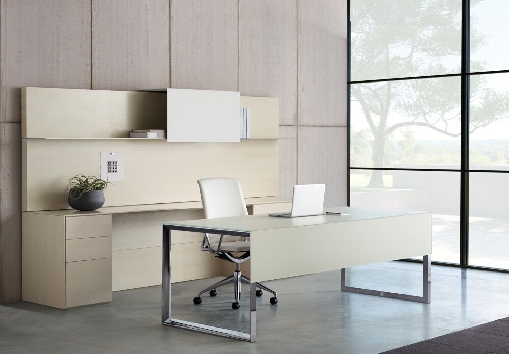 Merino is refinement. It represents a very minimal approach to casegood design by focusing on minute details and clean lines. It holds itself to a higher standard of precision and attention to detail, and its style features sophisticated mitered corners, giving it a thin appearance all throughout the product.