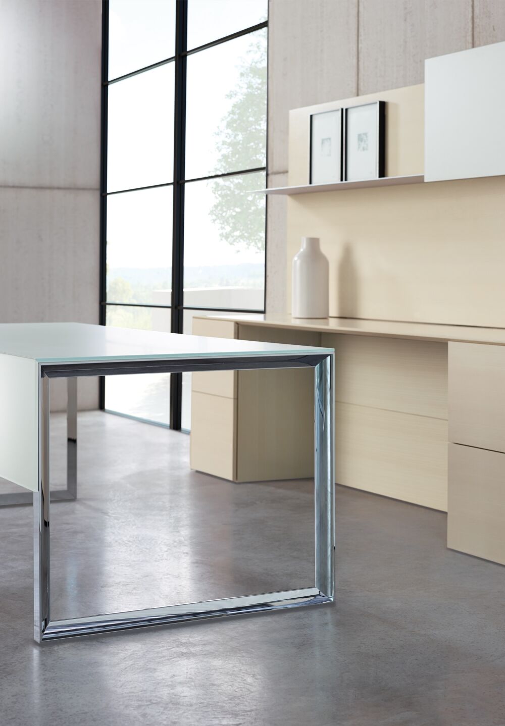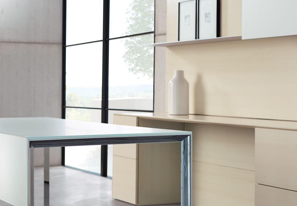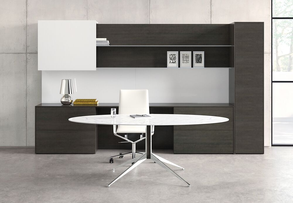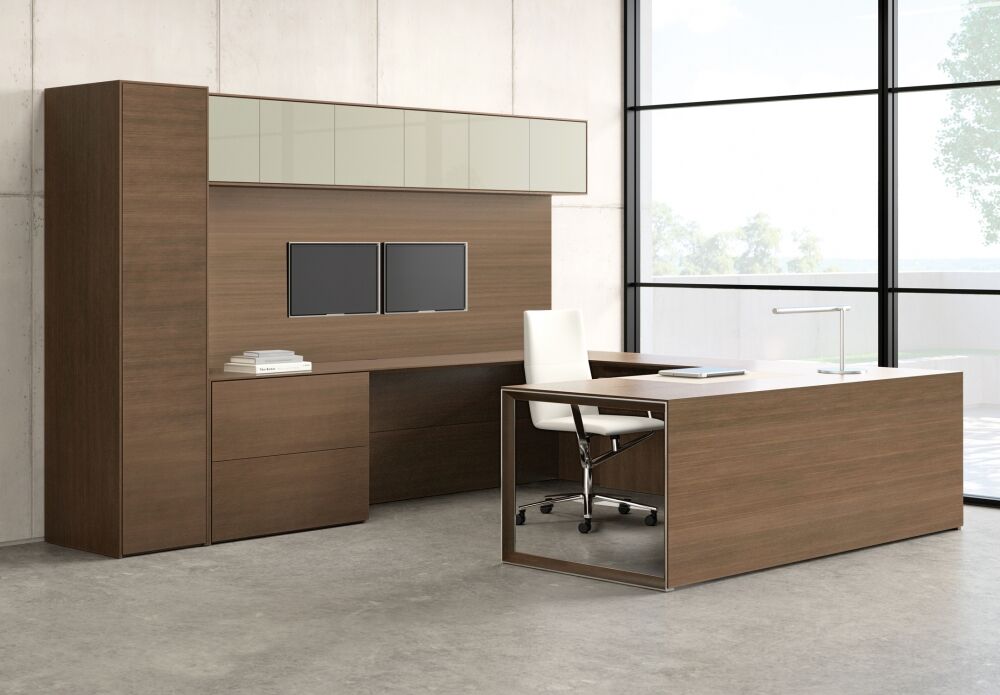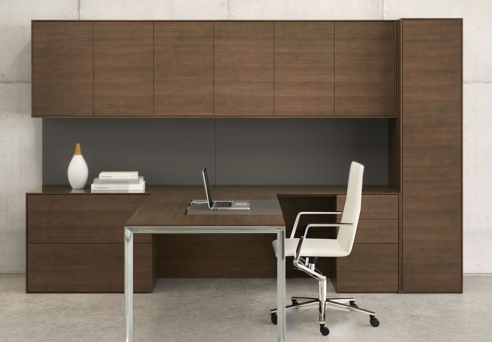 Merino is refinement. It represents a very minimal approach to casegood design by focusing on minute details and clean lines. It holds itself to a higher standard of precision and attention to detail, and its style features sophisticated mitered corners, giving it a thin appearance all throughout the product.