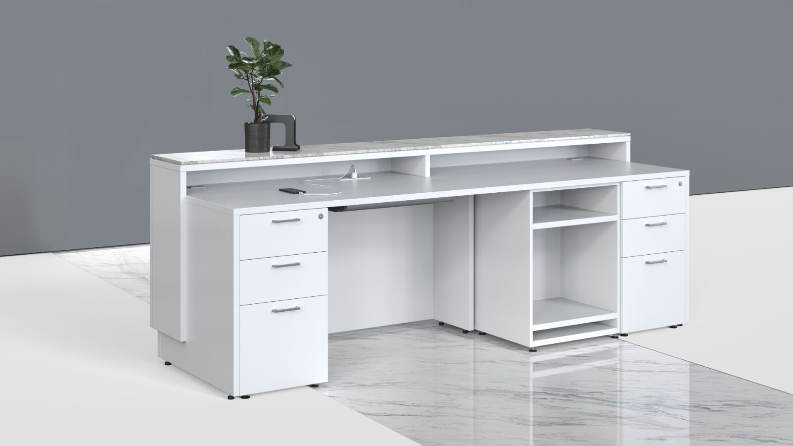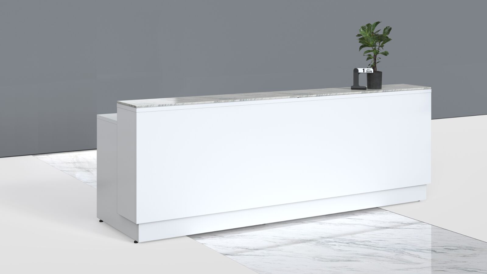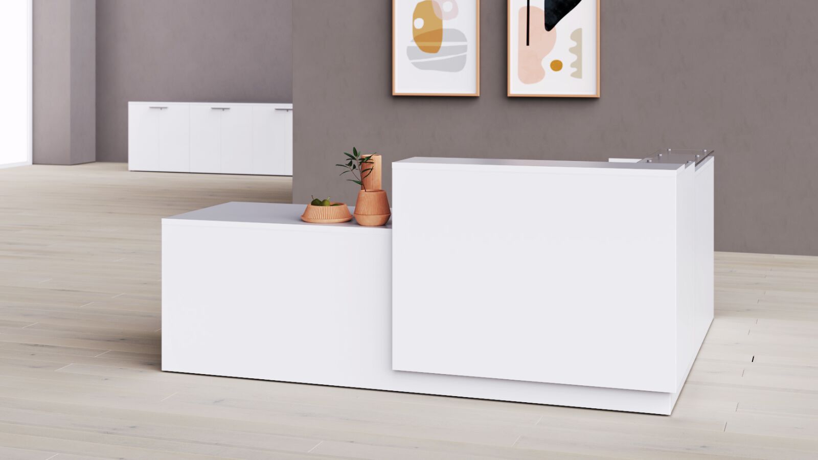 Enhance your welcome area with Classic Reception Desk by Three H, featuring bold cube styling and a vast selection of materials and finishes. Because every office should have a reception area that makes people feel like they belong.