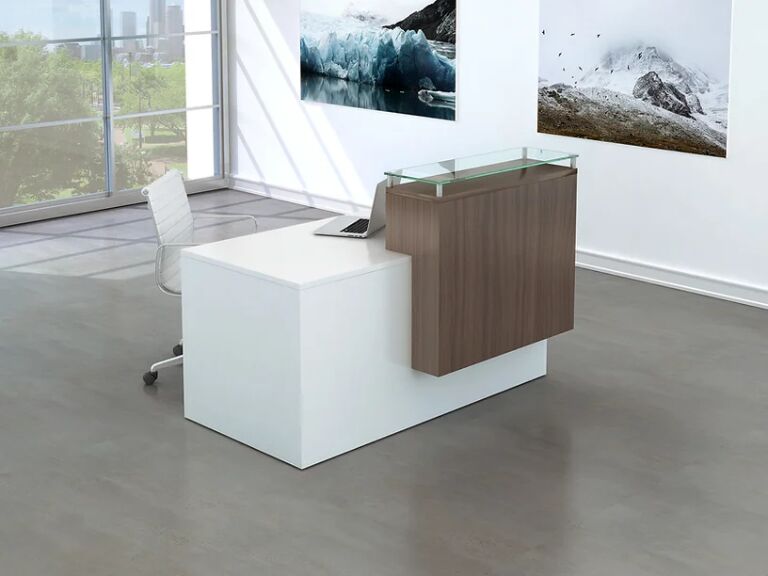 Whether you’re looking to give your waiting area a fresh look or would simply like to create a friendly atmosphere, the Maverick desk reception station is the right choice for you. With the ability to mix and match any of their 20 standard laminate colors and a variety of different shape configurations and size options allows it to be customized for any space. The Signature Maverick Series combines classic all-laminate designs to provide modern day durability for any office space.