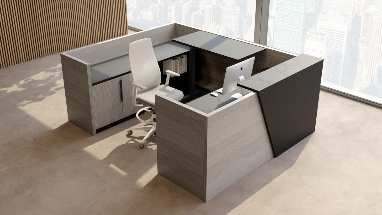 DeskMakers Overture reception desk makes an important statement to your company's visitors. You want something that's well-designed, functional, and matches the other furniture desks and workstations in your office. By striking the perfect balance between design quality, functionality and affordability, the Overture reception desks create the ideal first impression. Available in a wide variety of finishes, materials, sizes and styles that easily combine for the ultimate introduction to your space.