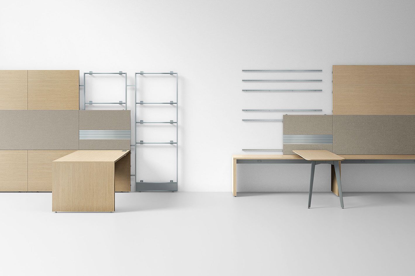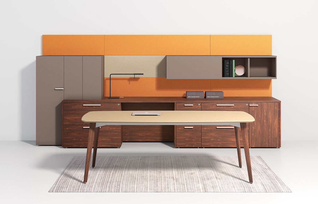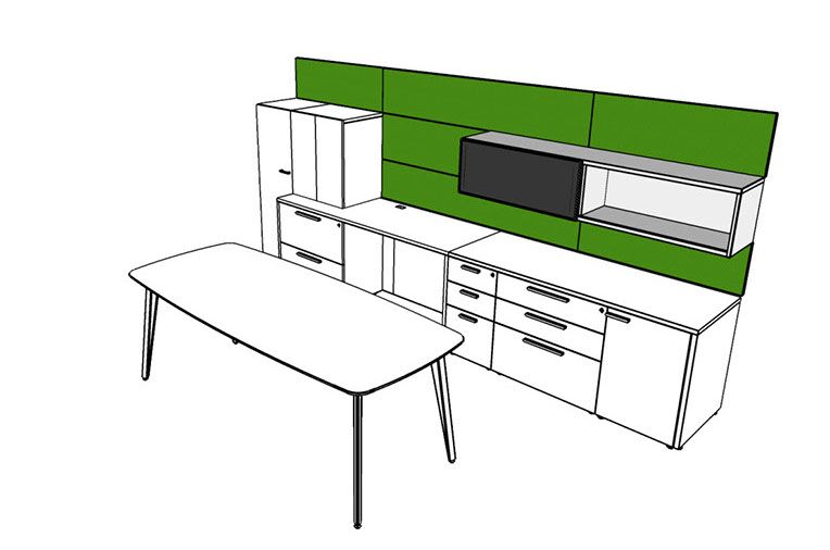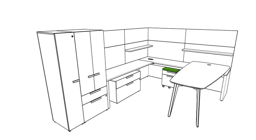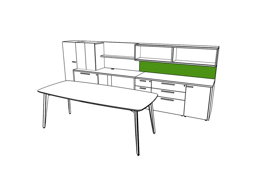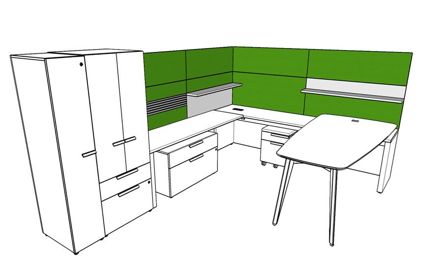 Rescape starts with a wall tile framework that includes panels of various materials: laminates, fabrics, white boards and accessory rails; while also integrating shelving, storage, electrical components and various work surfaces. Various components and style features of all Three H products can be considered when working in a Rescape office. Whether it be storage components from Create™ or desking from the Premiere Series, clients can build a highly productive and beautiful working environments for private offices, open plan and collaborative spaces. Rescape is a workspace initiative that will continue to evolve at Three H. As designers and clients participate in the creation of new spaces and the way we work (‘rescaping’), Three H will launch new materials, components and style features while seamlessly integrating a variety of office furniture designs.