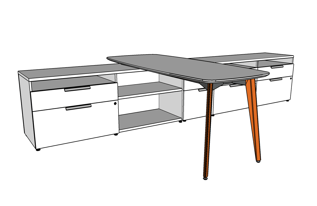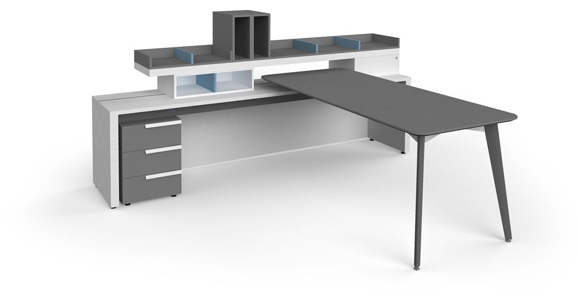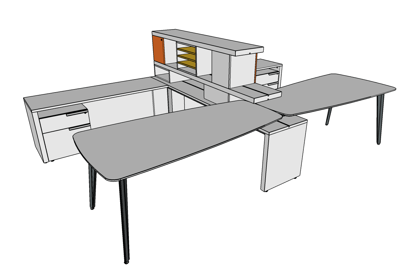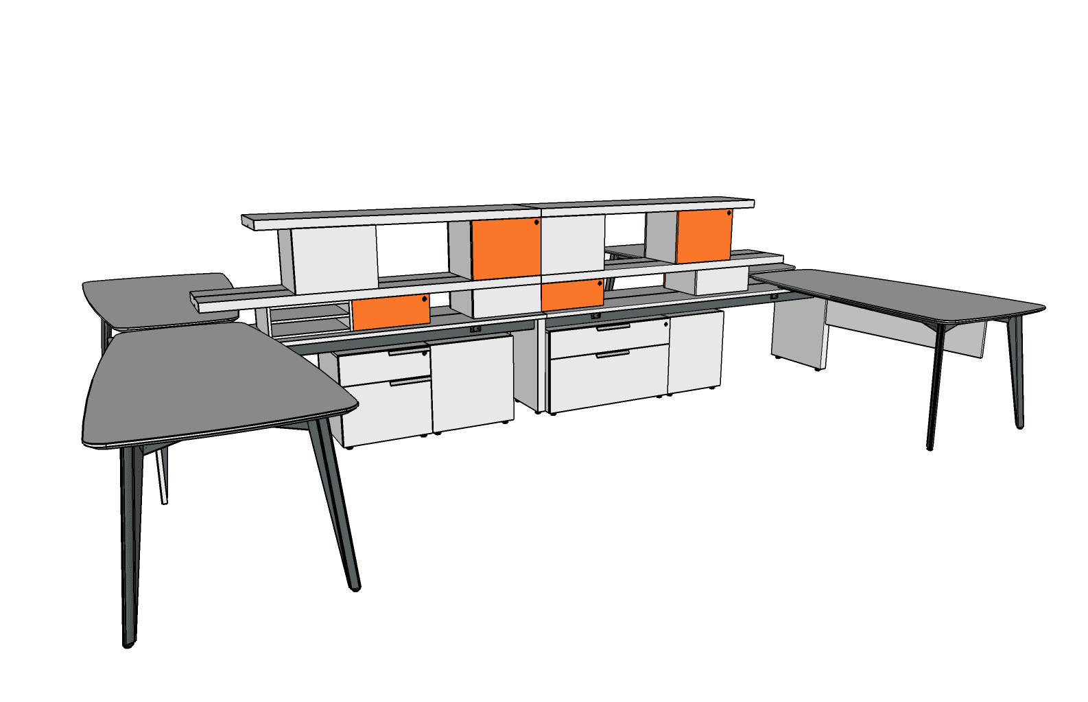 The design team extended the notion of working with a primary power-beam by building creative storage and open access components within additional shelving above the core beam. The stacking and layering of Workshelf individual and shared storage modules within the two-inch shelves is a signature element of the product line. The cantilever and open asymmetrical shelves offer freedom to place items and objects in an orderly but creative fashion. Workshelf storage includes: cabinetry with lock options is a personal spot to secure laptops, phones, tablets etc.; storage cabinets can be arranged in a shared fashion with the option of four new colorful acrylic fascia; book and binder slots offer arms reach flexibility; paper trays are a nod to the in-out baskets of traditional offices and smoked acrylic privacy dividers offer a handsome design touch.