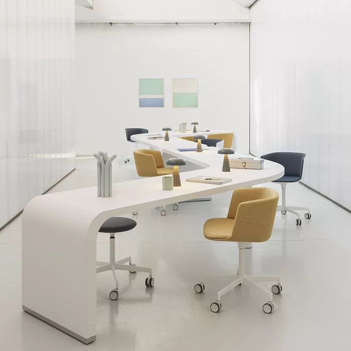 Introducing “BRUNCH” – an exquisite table crafted by La Palma, the renowned Italian manufacturer of exceptional office furniture. Blending elegance and innovation, this extraordinary piece embodies the convergence of two distinct worlds, inspired by the cherished tradition of brunch. With a gracefully curved wooden top that seamlessly transitions in thickness, and a meticulously designed metal base exuding a sense of refined precision, BRUNCH is a testament to exceptional craftsmanship. Its captivating asymmetry invites boundless creativity, allowing for free arrangement and height variations, reminiscent of a dazzling starburst. Experience the harmonious marriage of style and functionality as BRUNCH becomes the focal point of your office space.