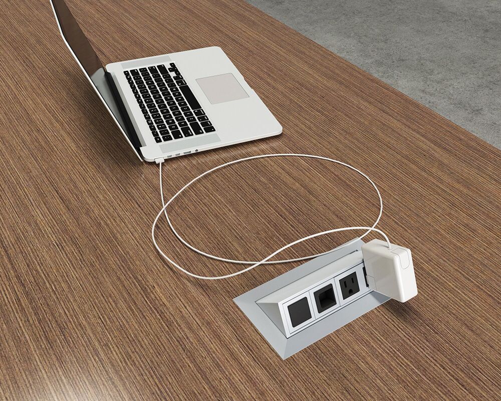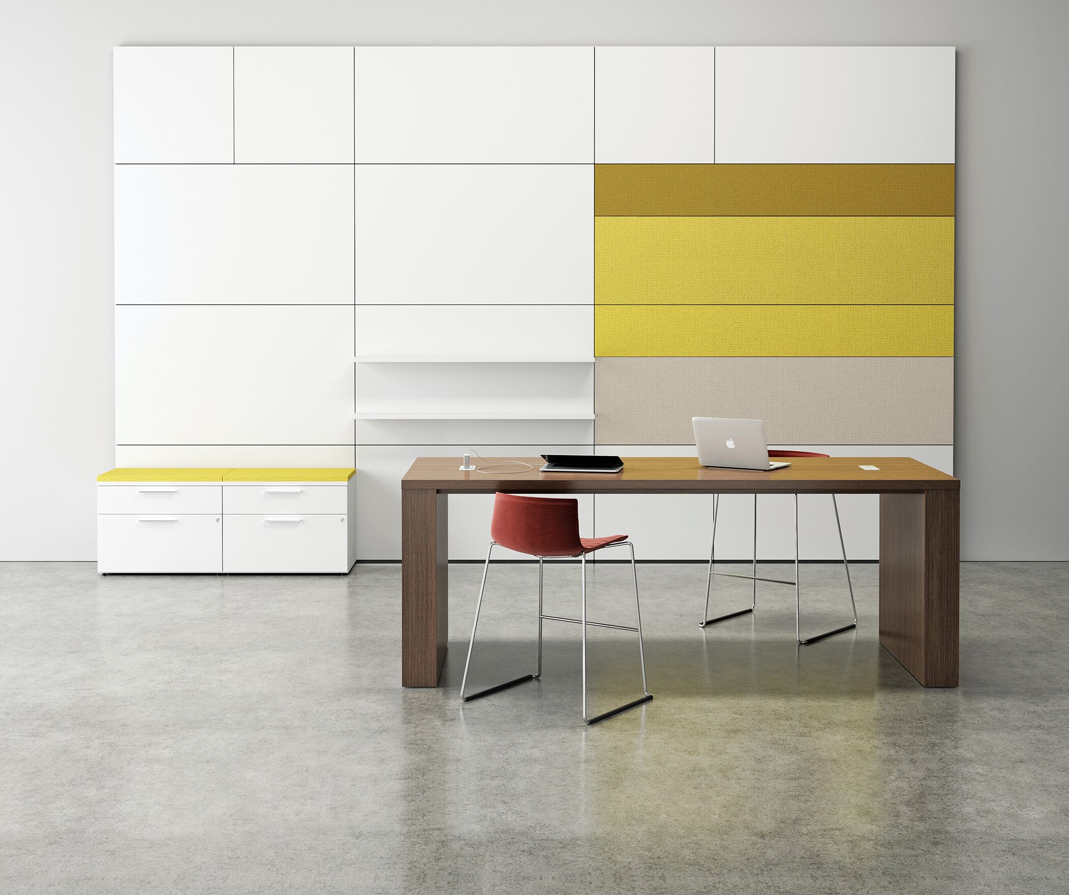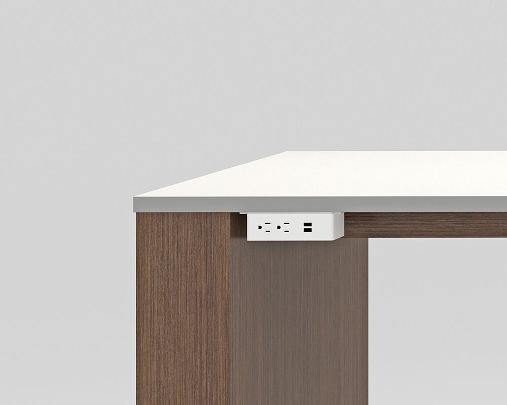 Elegantly simple collaborative, bar and counter height, work table program. Featuring a new optional easy-access