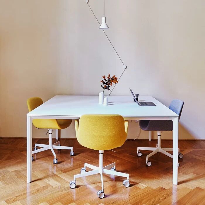 Introducing La Palma's "ADD T" table – the embodiment of minimalist elegance and versatile functionality. Crafted in Italy, this remarkable table adapts seamlessly to private offices, open spaces, and meeting rooms. Its die-cast aluminum legs allow for multiple configurations, while concealed cable management and integrated power options ensure a clutter-free and user-friendly workspace. Experience the synergy of style and practicality with the ADD T table, where form meets function in perfect harmony, bringing life and inspiration to any work environment.