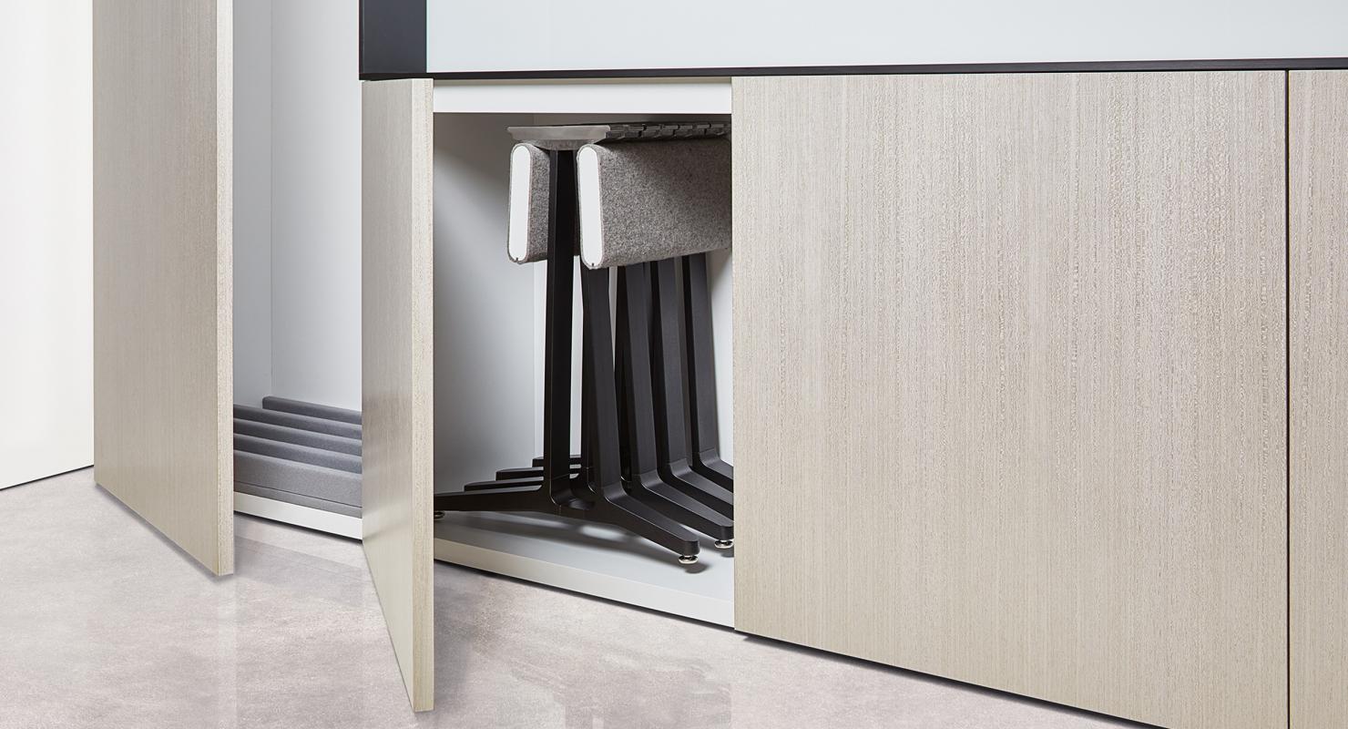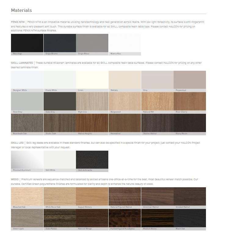 SkillSet is an adaptable table system providing functional flexibility for your meeting spaces. Table tops connect with a shared leg base, and various table configurations are set up quickly without the use of tools. Integrated power distribution remains with the table top during use and storage, creating a minimal kit of parts and simplicity in setup and storage.