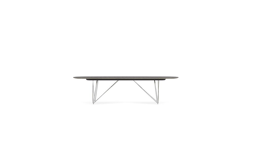 Baja brings comfortable elements of the home into the office. Its slender, sloping top accentuates the table’s graceful airiness, giving Baja an appropriate scale for casual or formal collaborative spaces. The top wraps around a slightly sloped hardwood edge for a seamless design that’s easy on the arms. The underside is a finished surface wrapped in a special resin to make it soft to the touch. Baja is avilable as a conference table or meeting table.