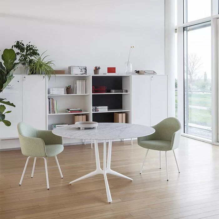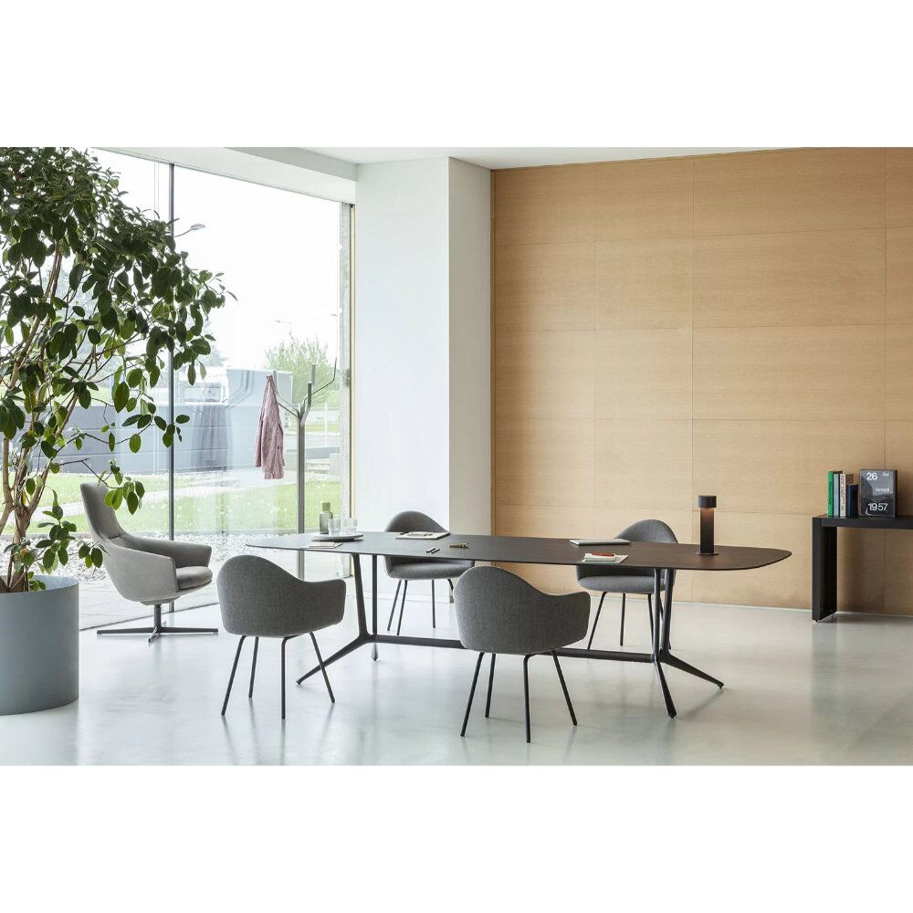 Experience the allure of TRAIL, the splendid table from La Palma's esteemed collection. Designed by the visionary Giuseppe Bavuso, this masterpiece effortlessly merges 1950s vibrancy, Nordic minimalism, and Italian craftsmanship. The die-cast aluminum base showcases three soft, zoomorphic-inspired legs, while the round top extends to 3.60 meters, creating a light and delicate meeting table for fluid spaces. With disassemblable and recyclable materials, TRAIL embodies Lapalma's commitment to sustainability. Embrace elegance, redefine your environment, and embark on a journey of style with TRAIL, the pinnacle of sophistication.
