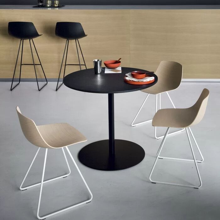 BRIO, that means playful, useful and versatile. With its elegant functionality and lightness, this table meets every needs, whether in restaurants, in the office or in any community space. This additional element is as practical as desks and sofas. With a choice of different heights (fixed or easily adjustable), BRIO stands out for its beautiful minimalist design.