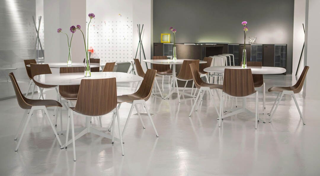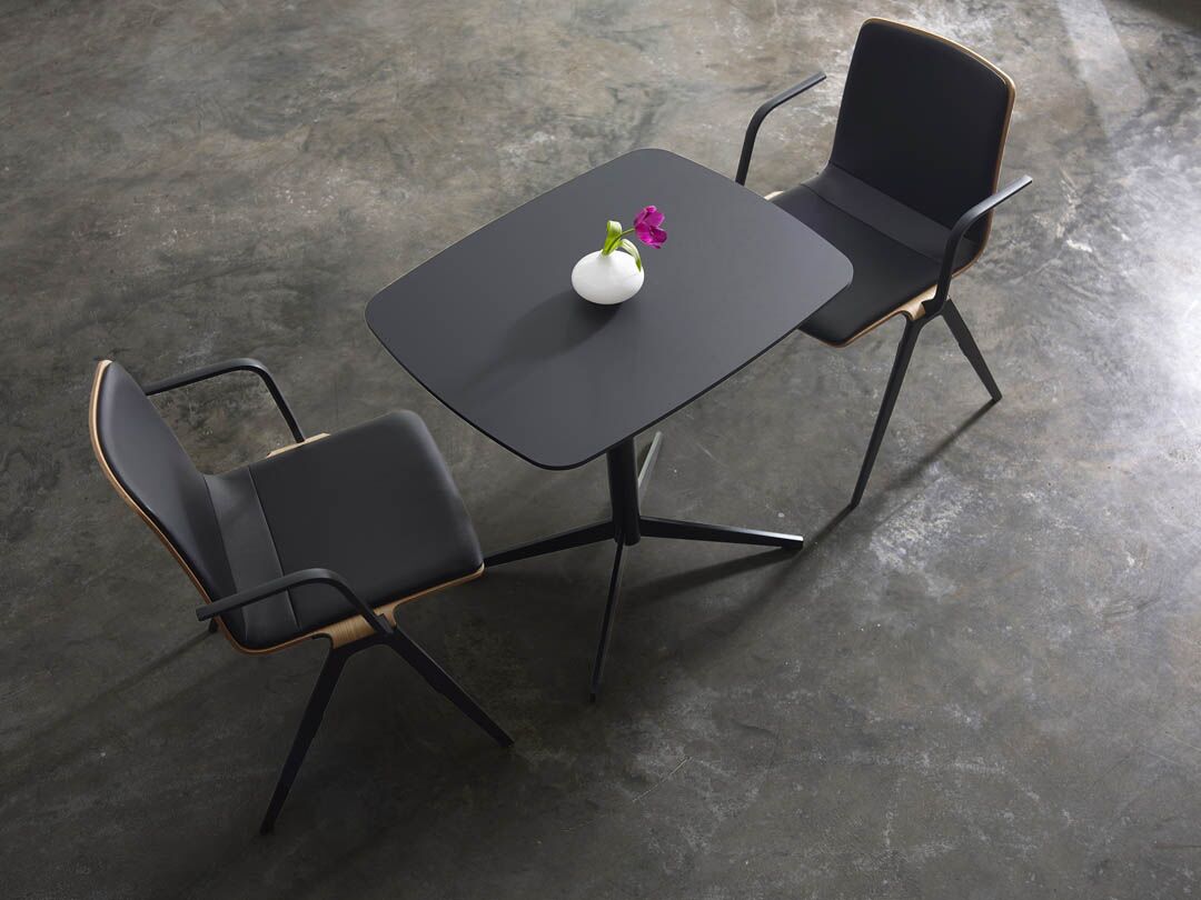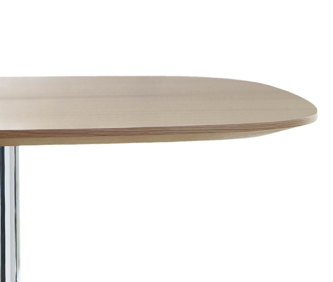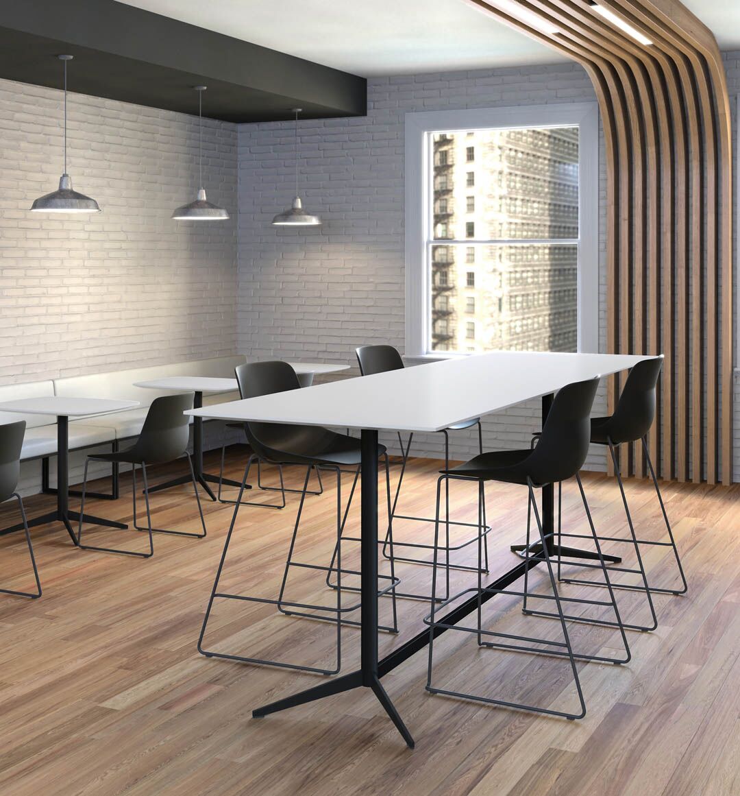 Mez is a perfect balance of hard edges, soft curves, and interesting shapes. This table series creates an appealing aesthetic in cafes, bars, collaborative areas, and small meeting spaces. The Mez Series features a wide range of options, from the most petite café tables to double-based meeting tables reaching 120 inches in width. Mez is a sizeable table line with a variety of options in size, shape, and materials. Starting at a petite 24” x 30” café table, the Mez line features options all the way to a 120” x 42” double-base table. All table sizes have at least two tabletop shape options, and all tabletops have up to 40 standard finish options.
