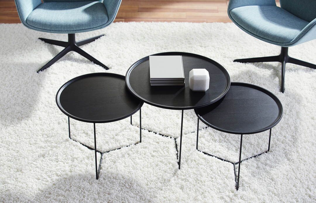 Valet occasional tables by Wolfgang C.R. Mezger offer a new innovative solution to occasional table applications. A study in geometric shapes, Valet is constructed from sleek metal bases and unique tray-like tops. These clean, modern tables evoke a residential feel, bringing a certain warmth to corporate and hospitality environments.