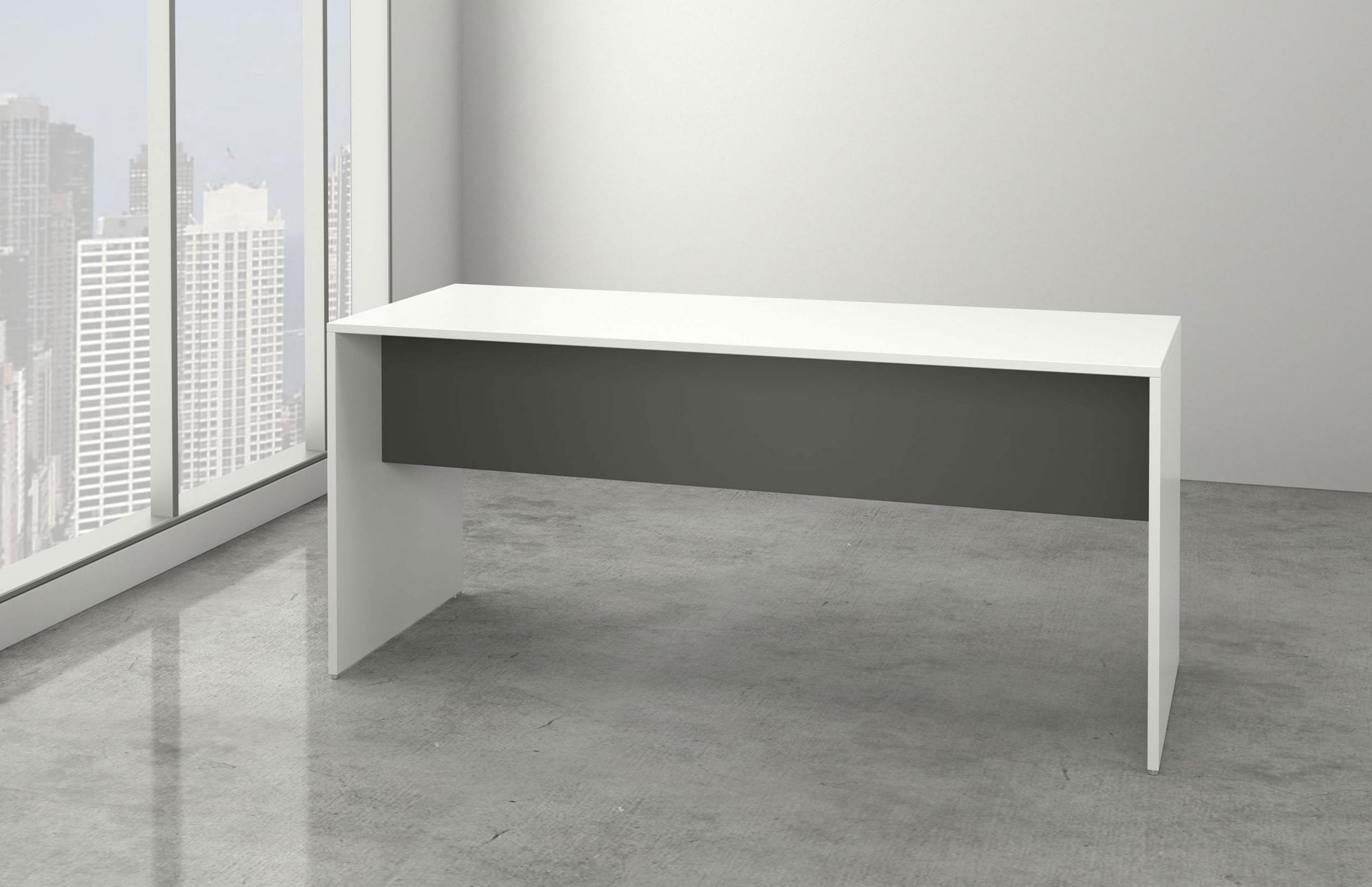 Parsons table featuring 1-1/8” thick panels with DeskMakers standard 2mm PVC edge Banding. Top over end panel construction, 15” high dual stretchers, and available in both standing and desk heights. (Formally Grade 1)