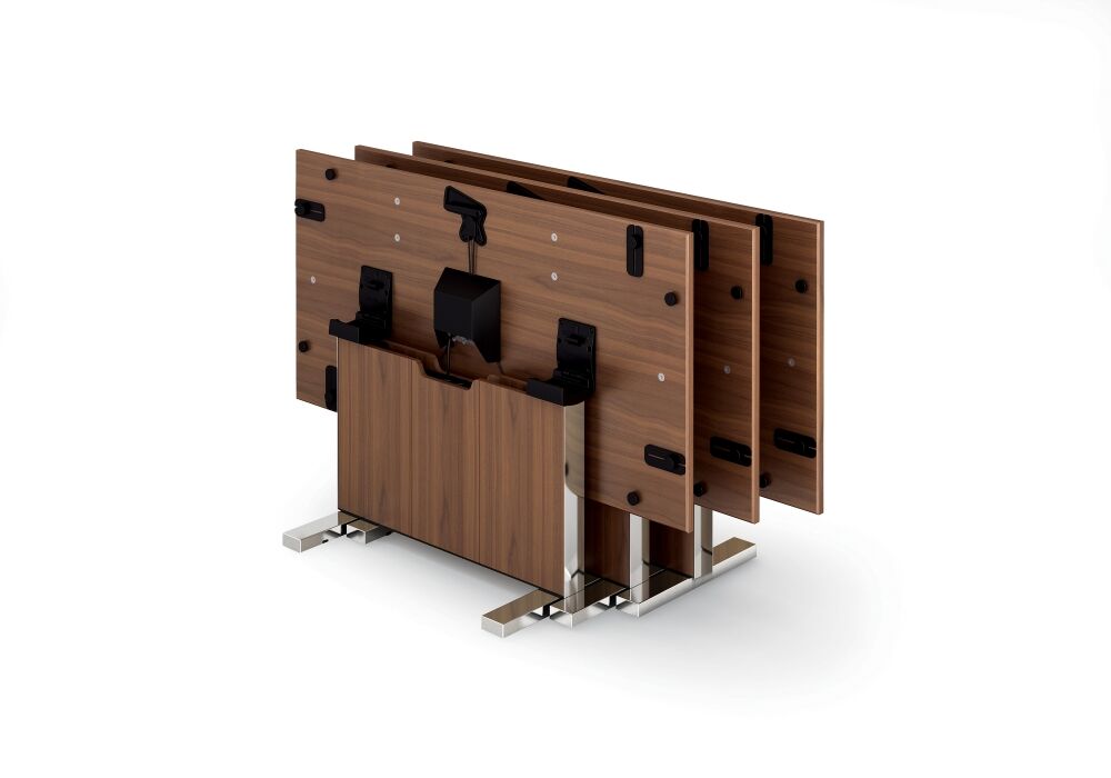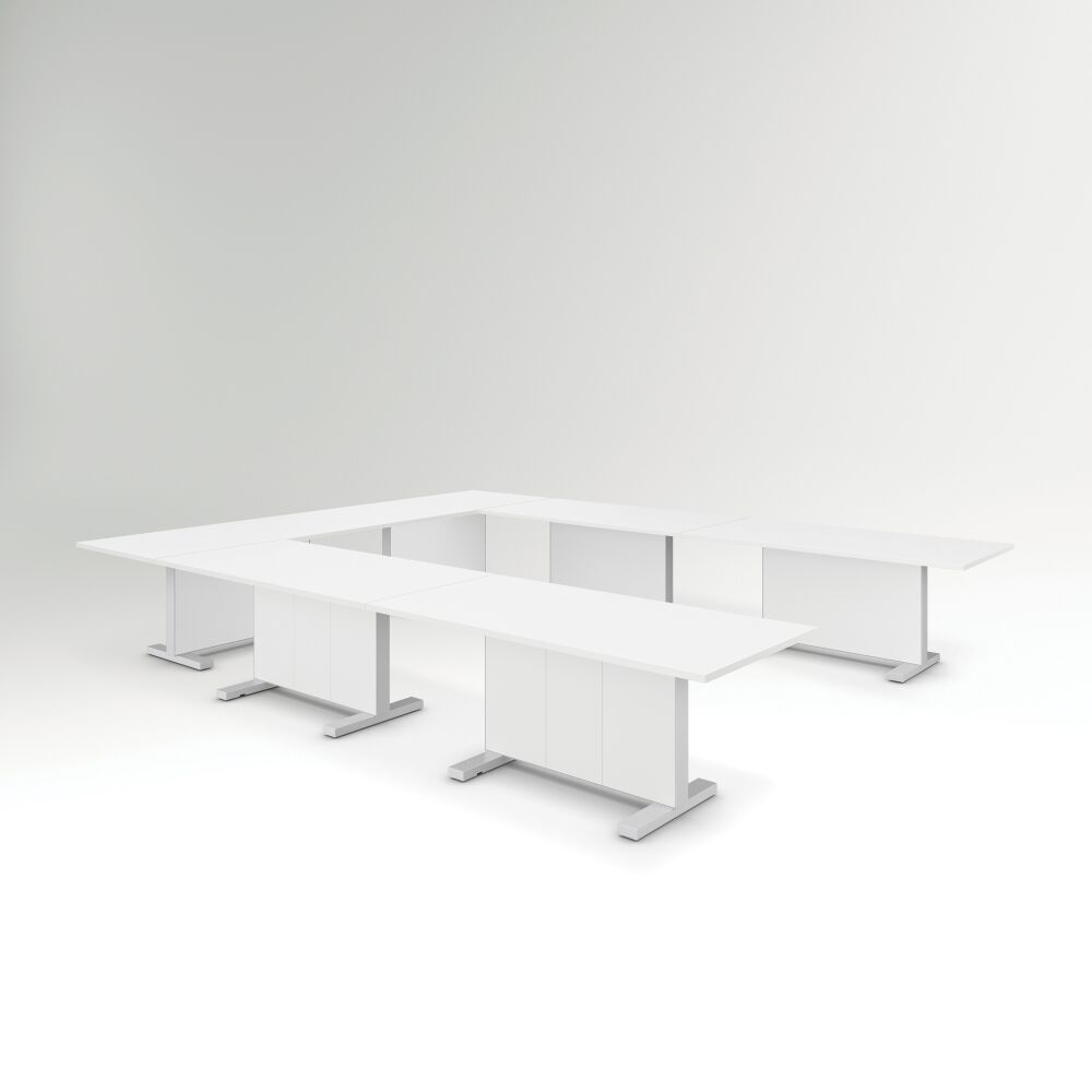 Approach tables are multifunctional, modular and adaptive tables for environments designed as multi-purpose meeting spaces that accommodate migration from training space, to event place, to formal meeting room. In such dynamic spaces where a refined aesthetic is critical, Approach tables reconfigure quickly to serve many purposes. Approach tables are familiar and elegant, simultaneously delivering high performance.