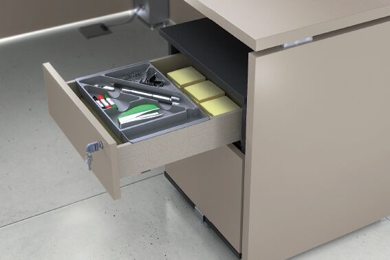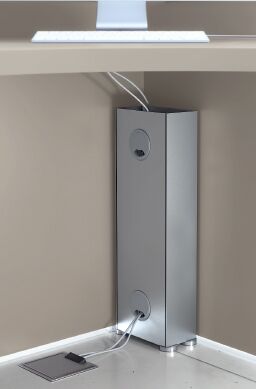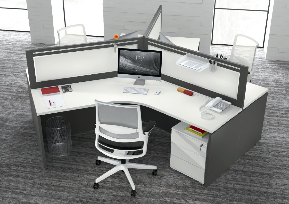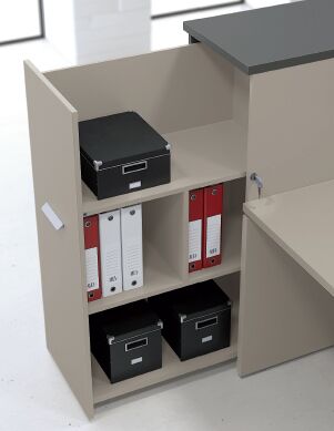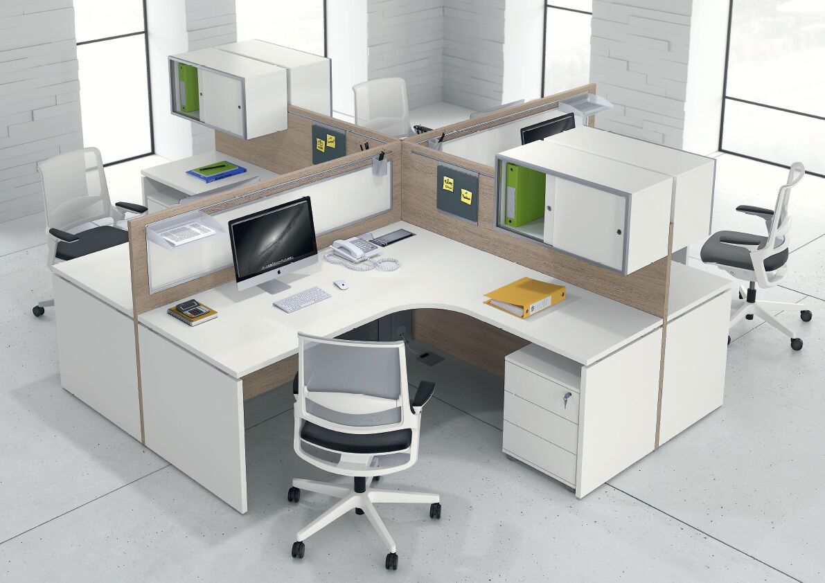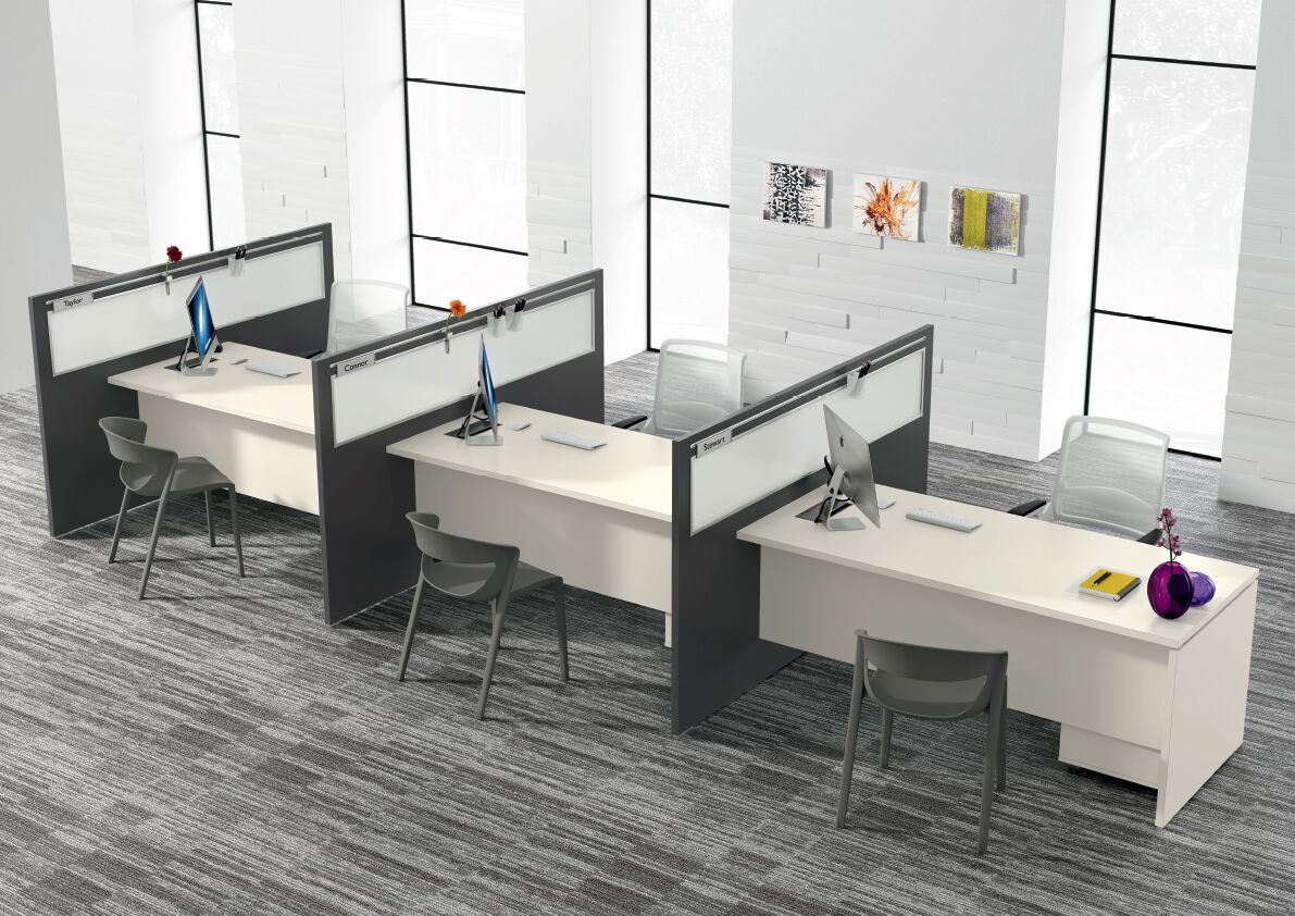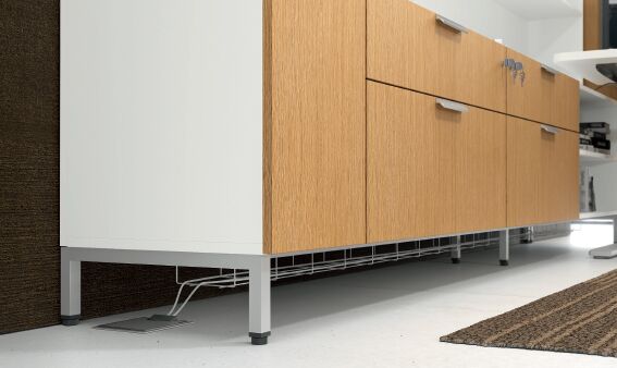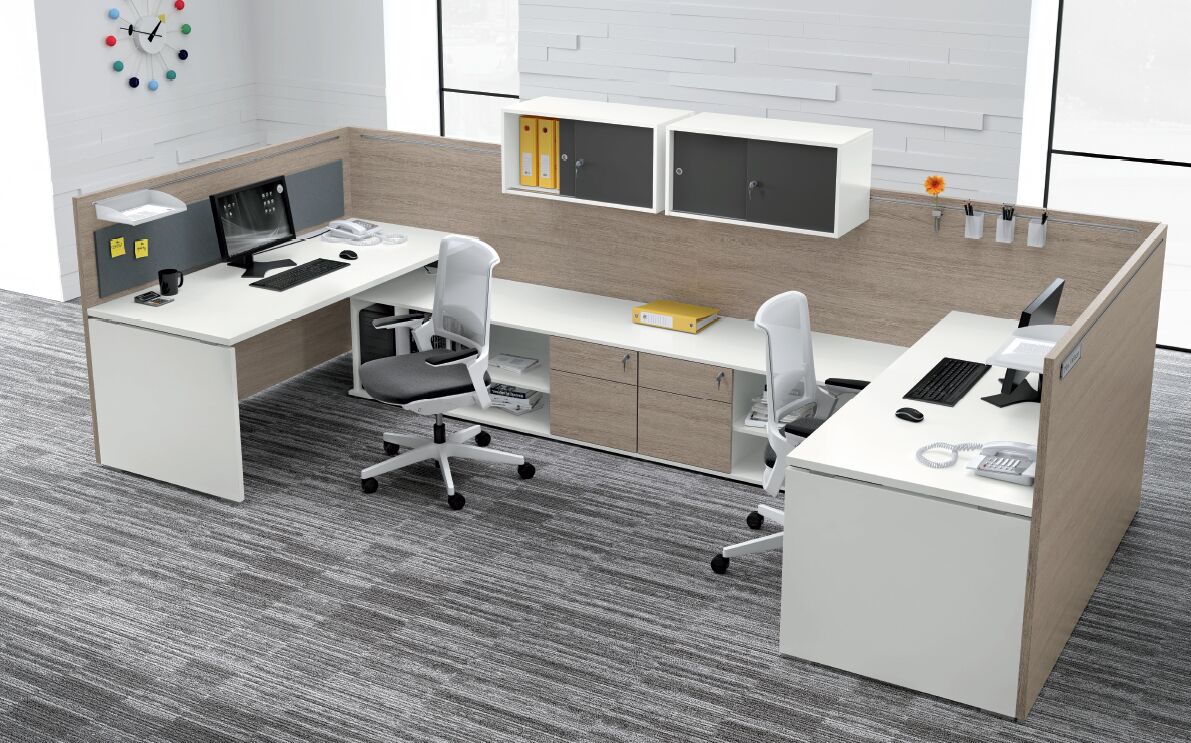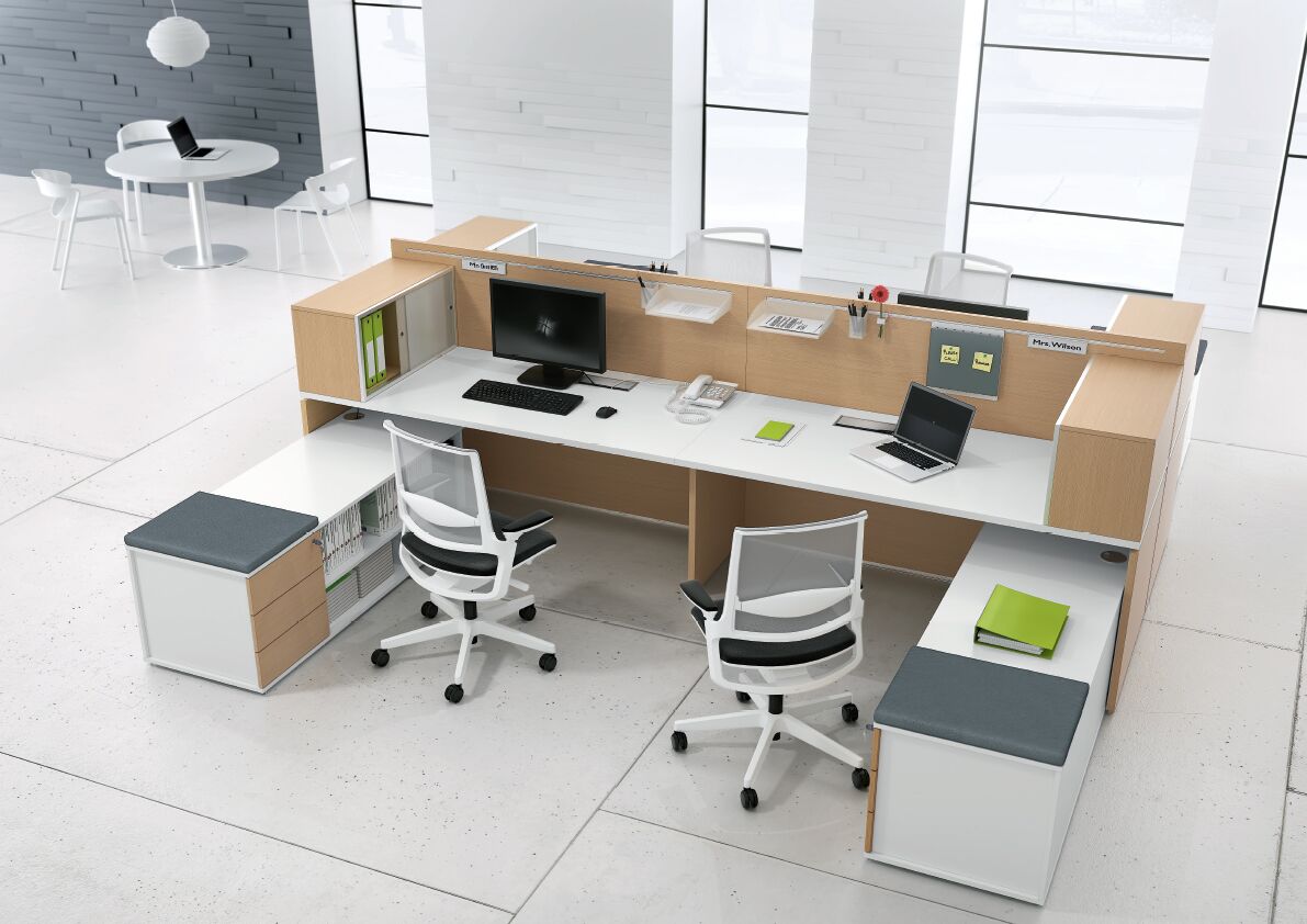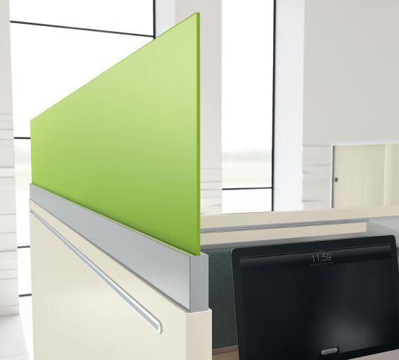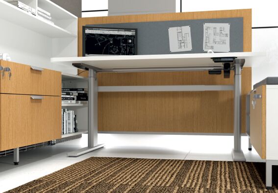 Atlante can be easily customized using several finish combinations. Every element can have a different color. Panel based Atlante features standing height work ports, open, shared or closed storage units, raised and floating shelves to help keep the full work surface free from clutter. Soft close wire management and vertical wire managers supports and enables creative work flows. Slim work stations in mixed colors eliminate “panel creep” while creating adequate space per each user. Seated height visual privacy screens in a variety of mixed materials make for an interesting landscape.