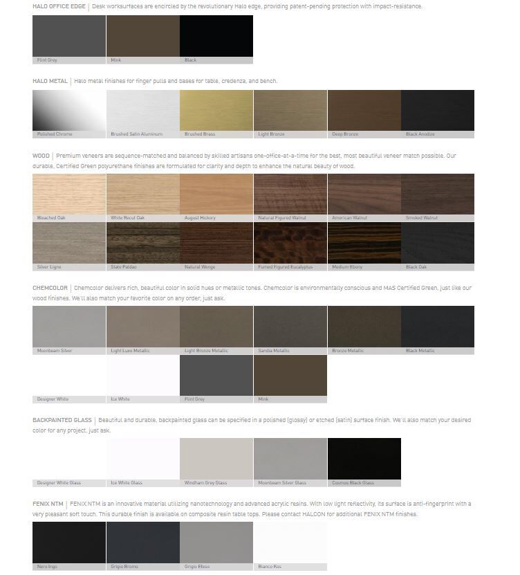 | Material - Desks | Glass, Laminate, Solid Surface, Veneer |