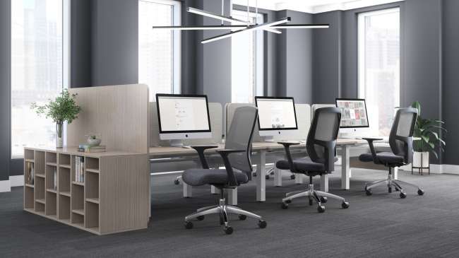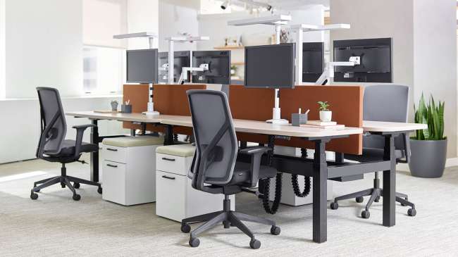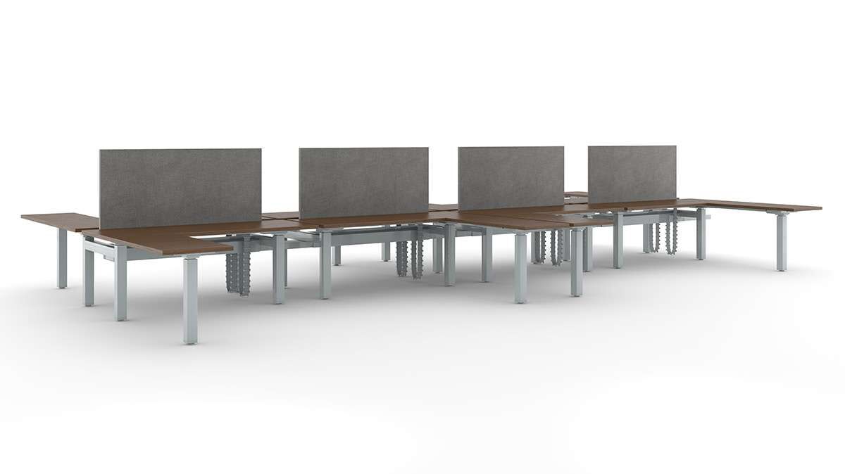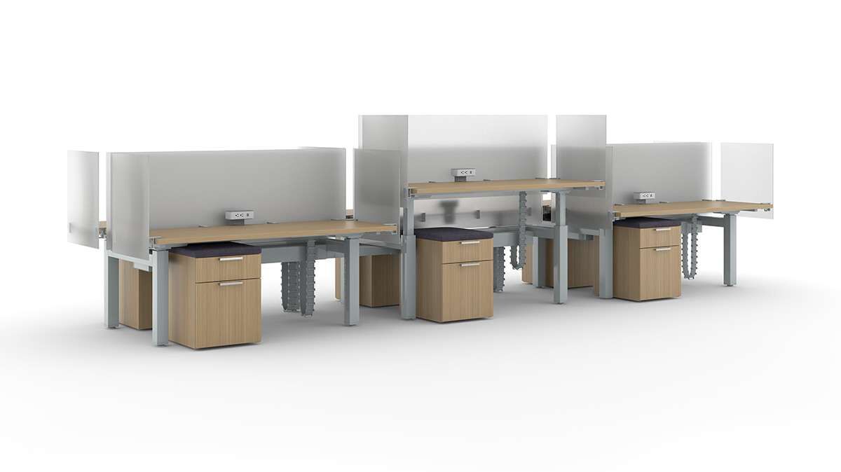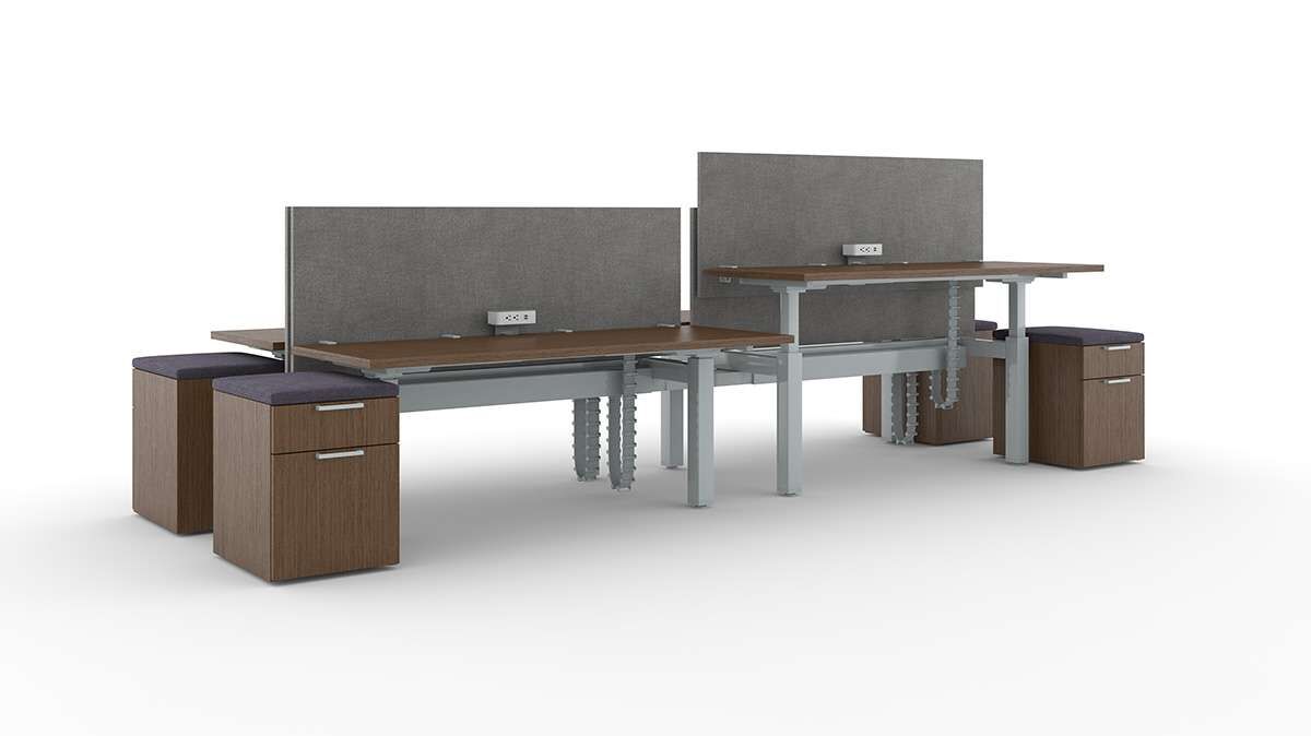Movement and well-being go hand-in-hand. Range inline height adjustable benching offers the ability to change work surface heights throughout the day to ensure movement throughout the day. These smart, intentional transitions between sitting and standing can relieve stress, engage muscles and nourish the body with improved blood flow. Range supports a different way to work, where movement inspires health, productivity, and creativity.