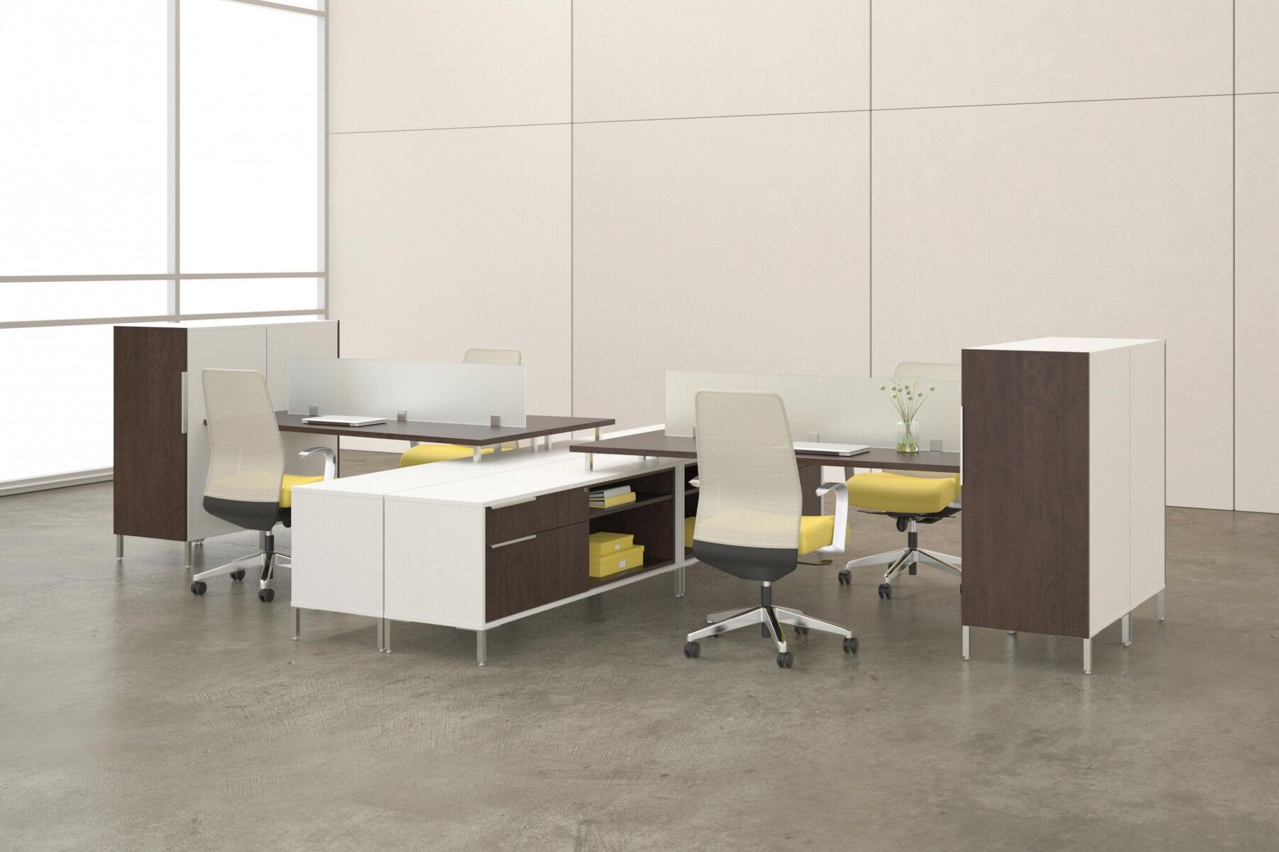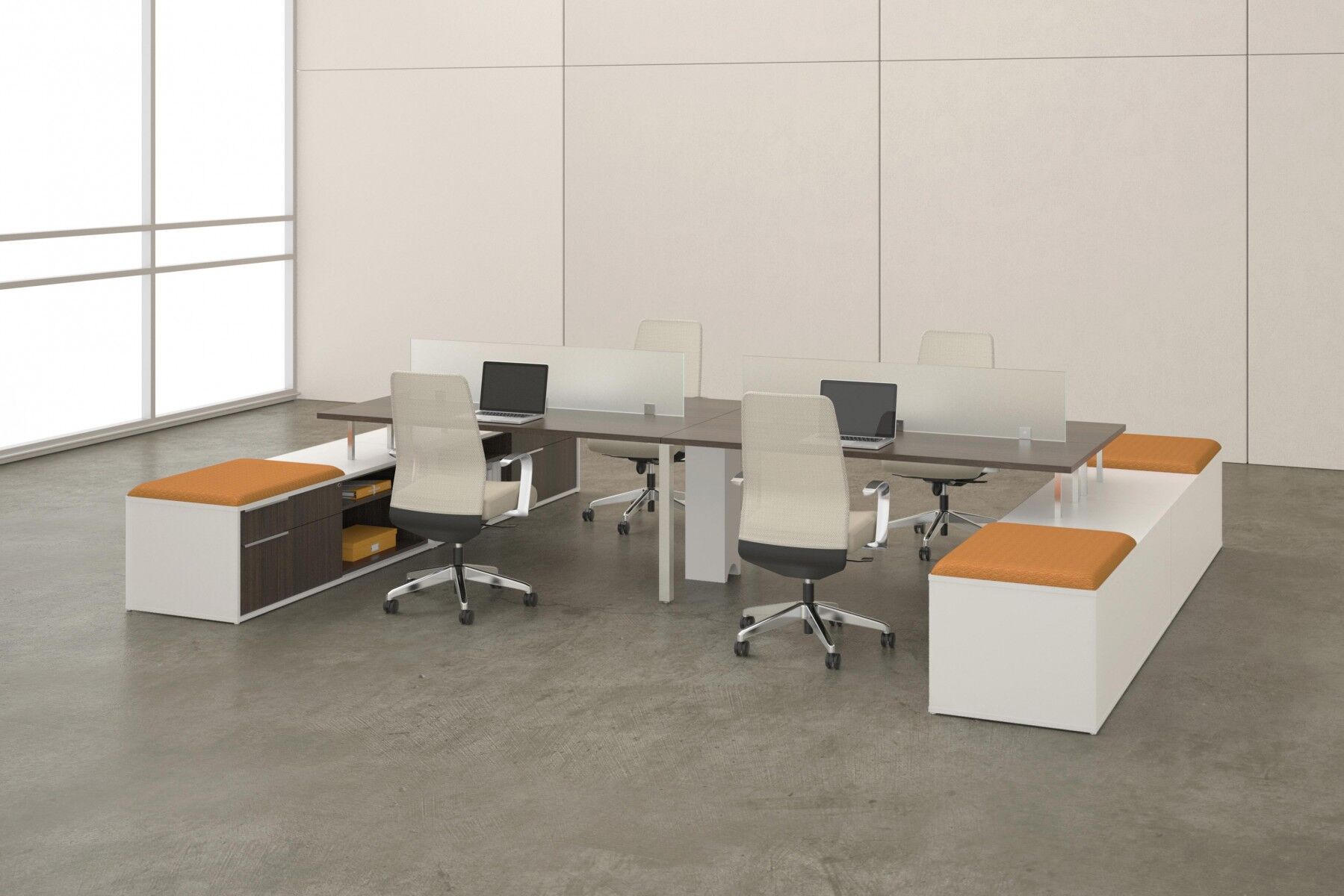 TeamWorx workstations offer unique styling and unprecedented flexibility for today’s changing office environment. This unique desking system allows for maximizing employee productivity while minimizing floor space. Easy to install, easy to specify, and easy to reconfigure.