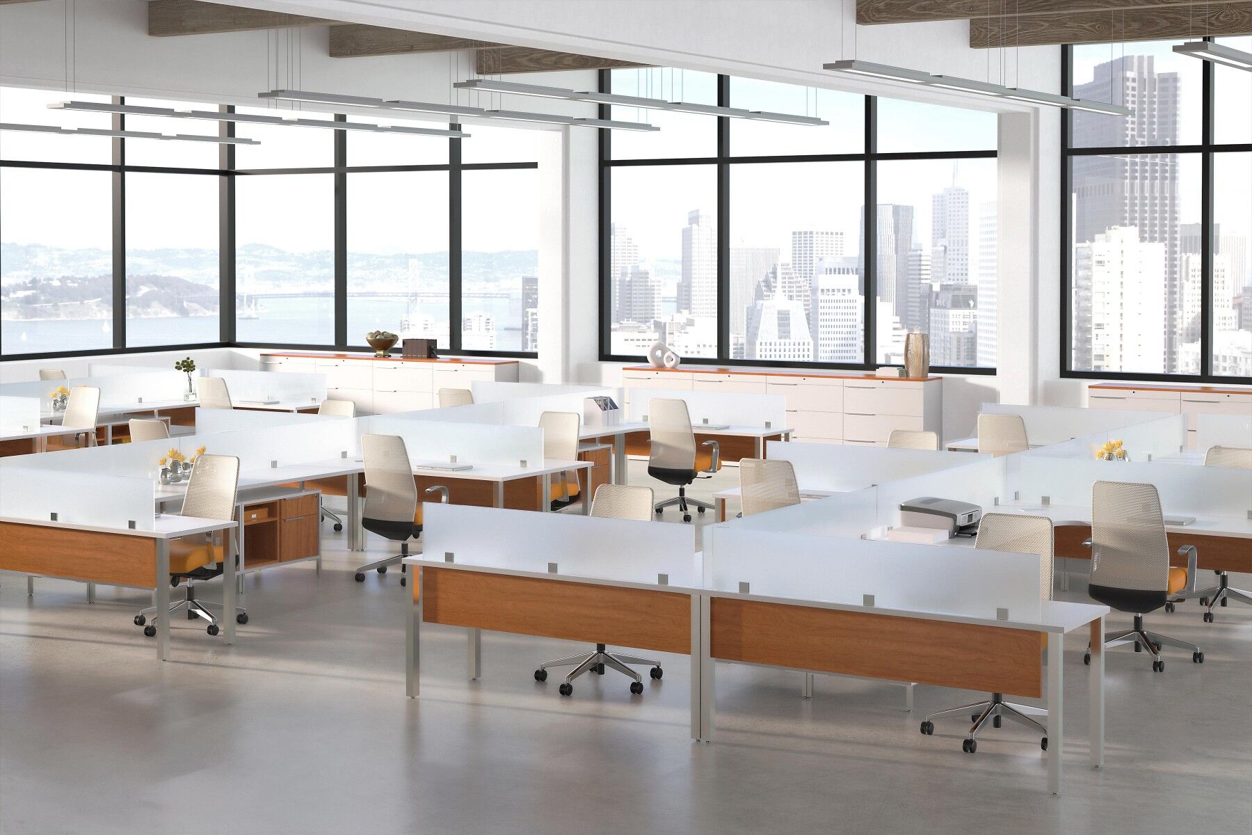 The future is here… The future of office environments. And DeskMakers TeamWorx Desking System is that future. TeamWorx offers a new way to design open floor plans, while also adding unique features for private offices. If you’re tired of the same old cubicles, you need to consider TeamWorx.