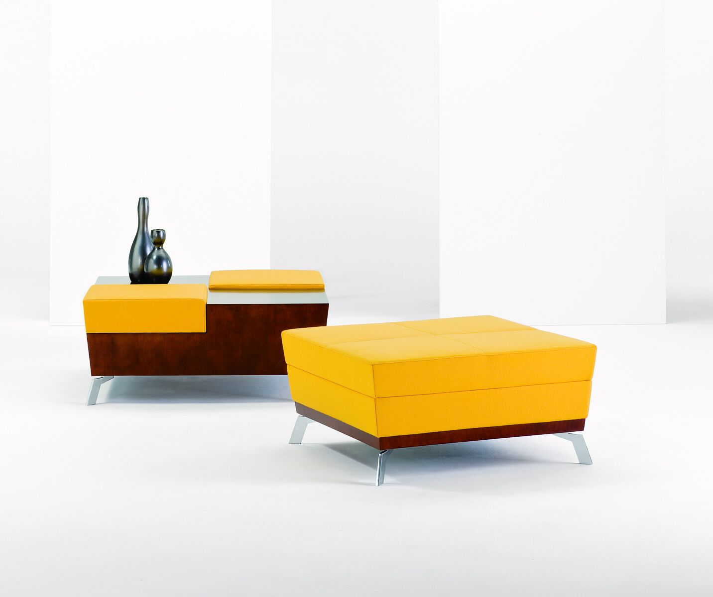 Savvy design and superior comfort set the stage for Achella, an expressive lounge collection featuring straight and tapered lines beautifully counterbalanced with fluid contours. Combining metal, wood and upholstered elements, Achella lounge, love seat and sofa models deliver stellar form and aesthetic brilliance – not to mention a variety of options to realize a purpose beyond simply waiting. Complementary occasional tables as well as round, square and rectangular benches complete the collection.