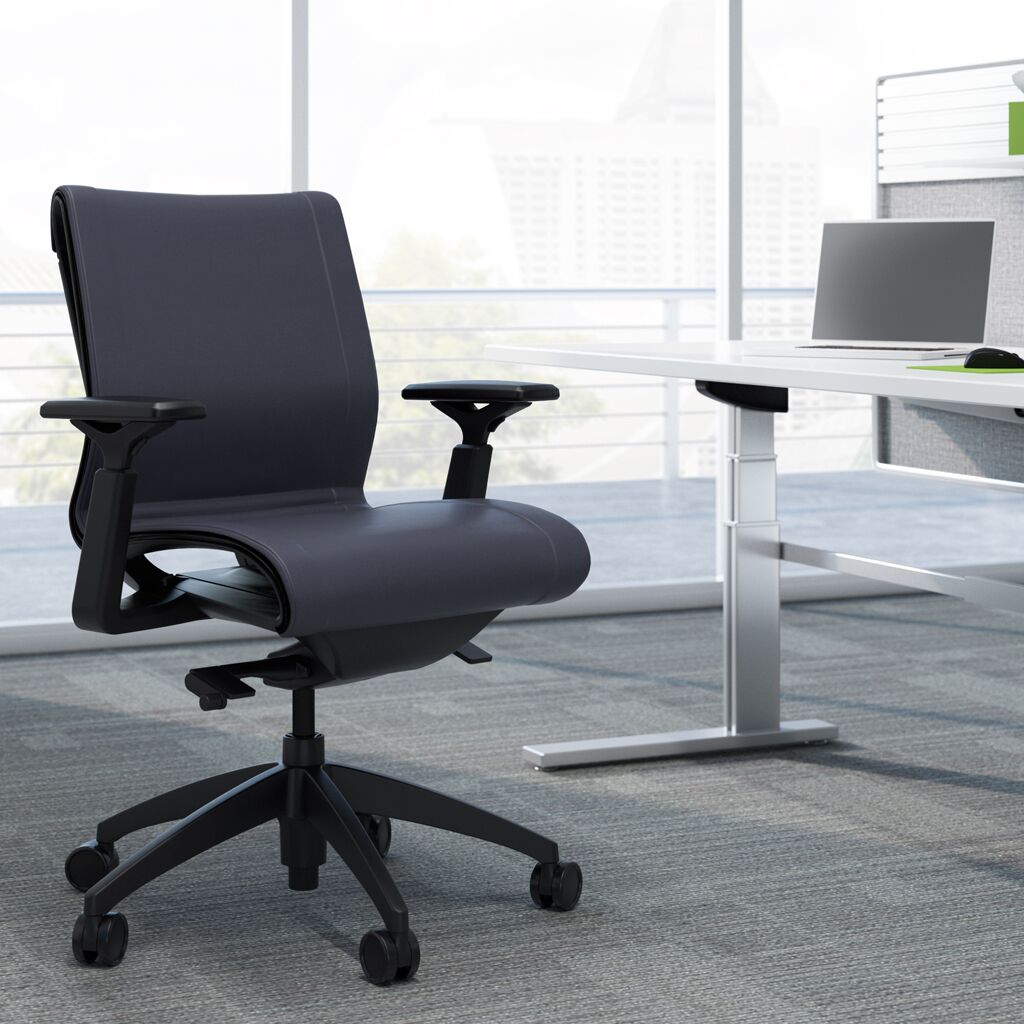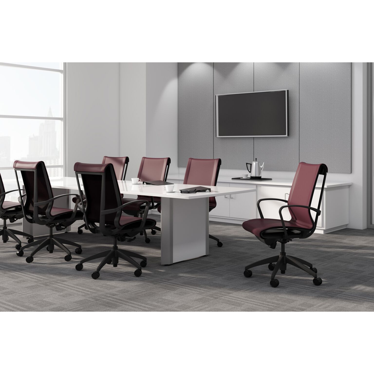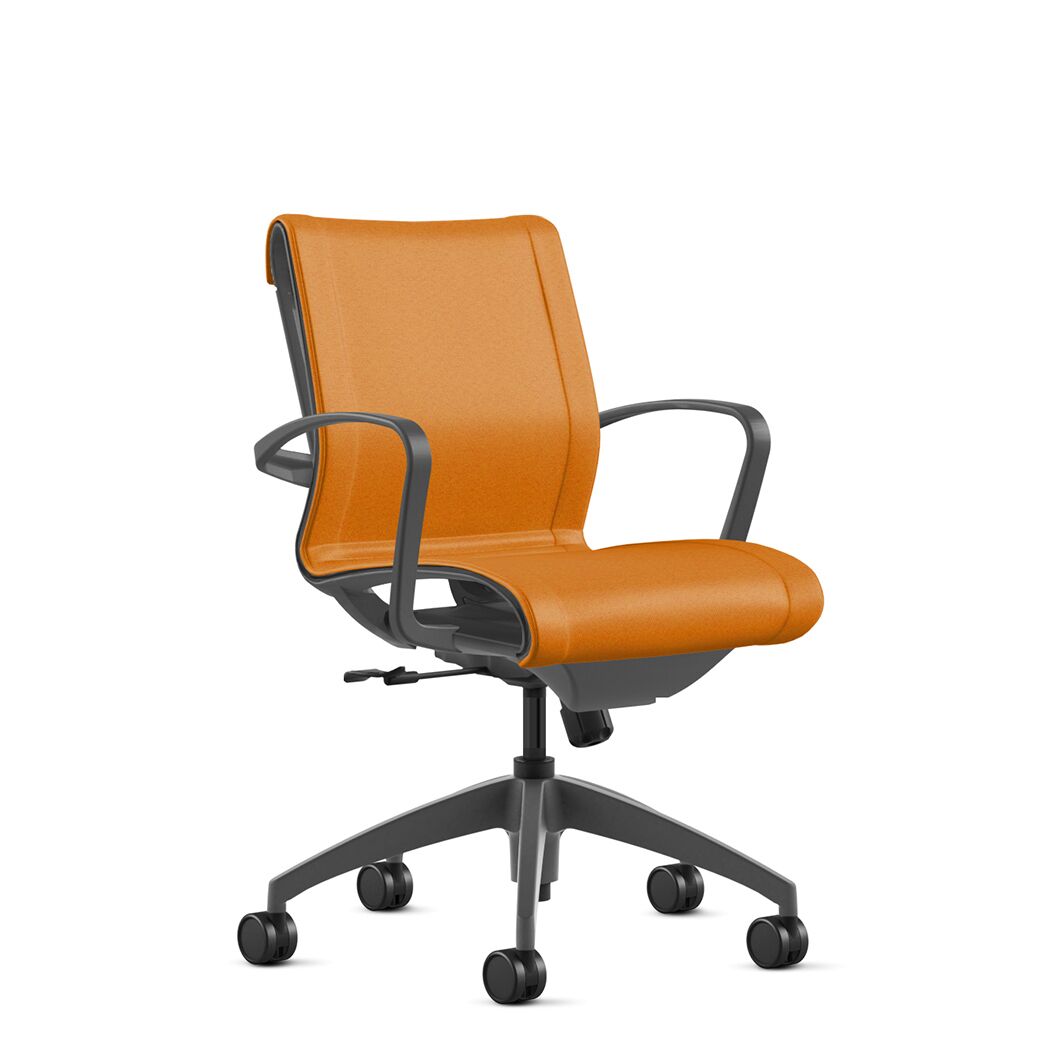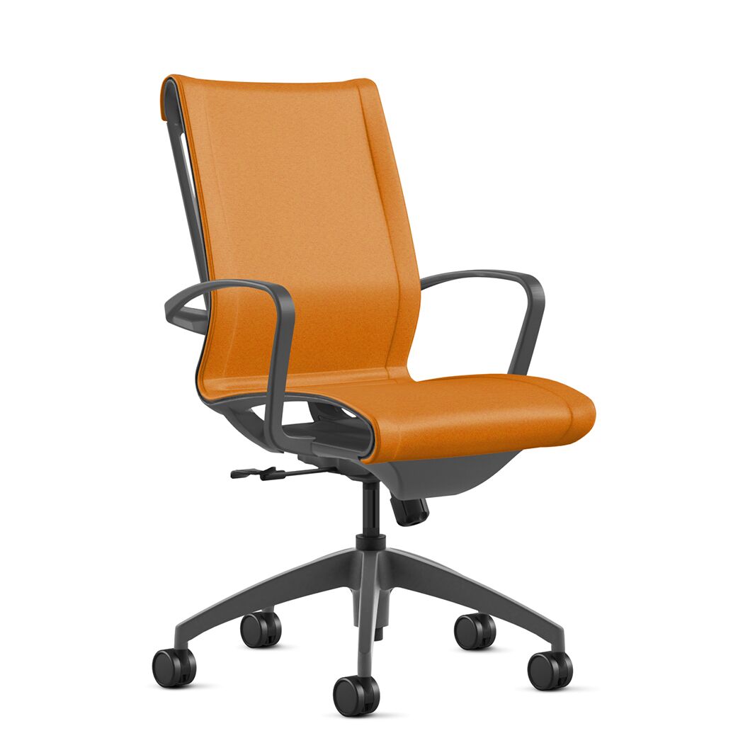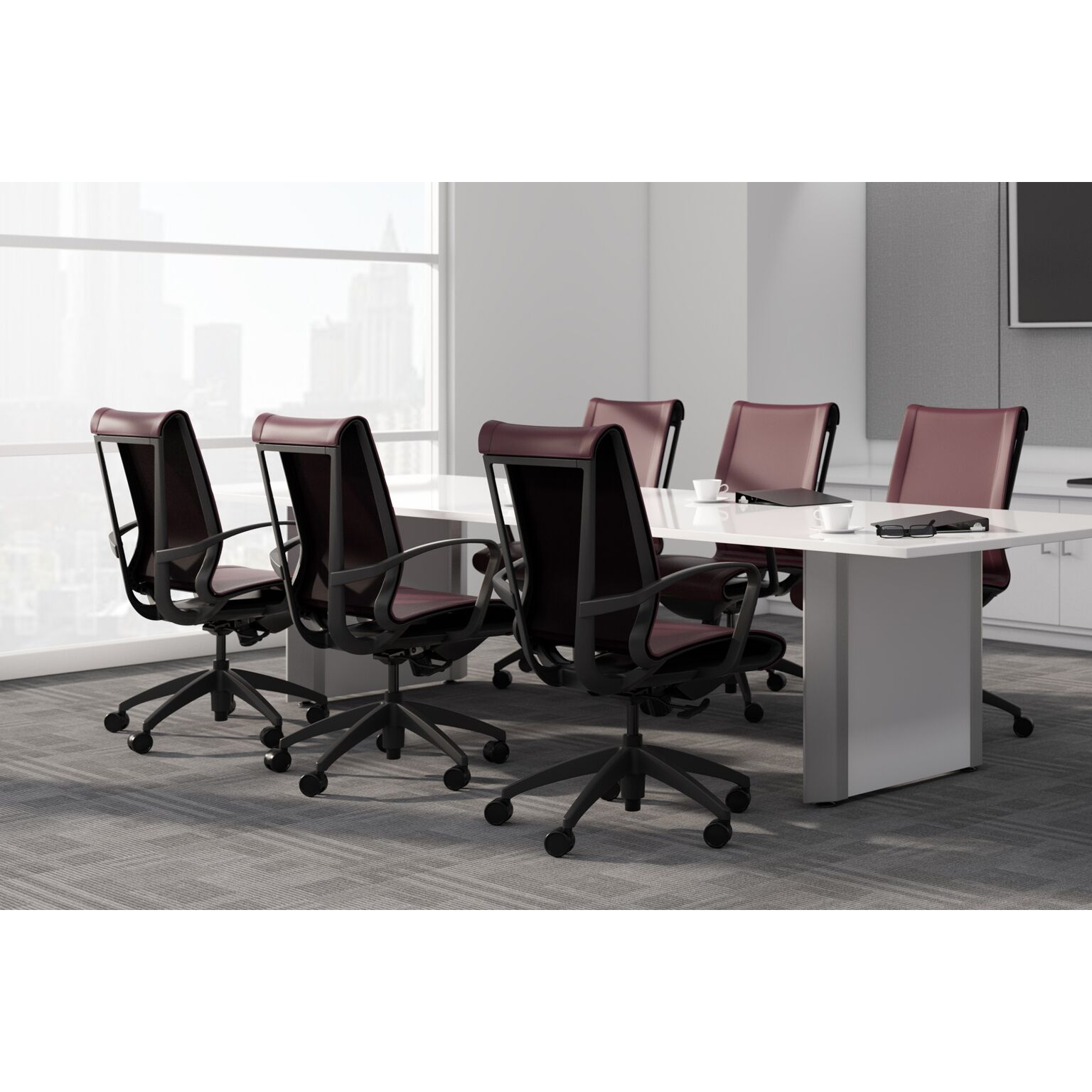 Inspired by the grace and elegance of butterfly wings, the Cydia upholstered conference chair was awarded the HiP award at NeoCon 2014. Available in 1,000+ textiles, this upholstered version includes a woven mesh beneath the fabric for a soft, comfortable, and supportive feel. Available with loop arms or six way adjustable arms, this chair is ready for private offices, meeting rooms, and collaborative settings.