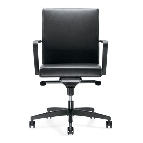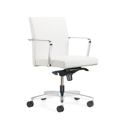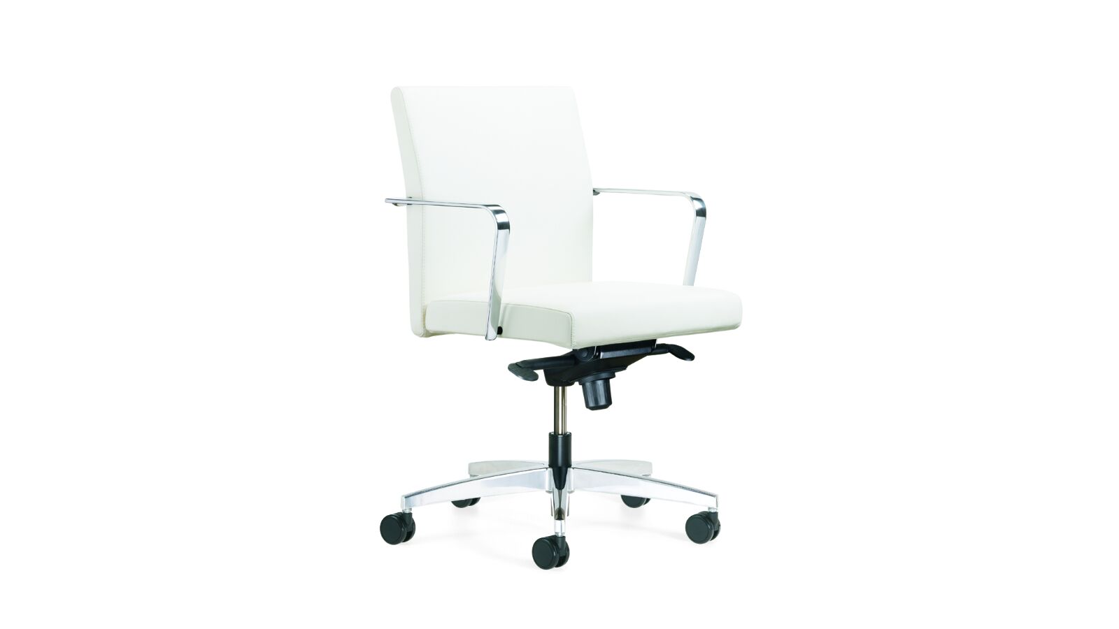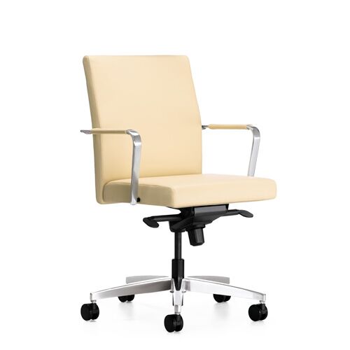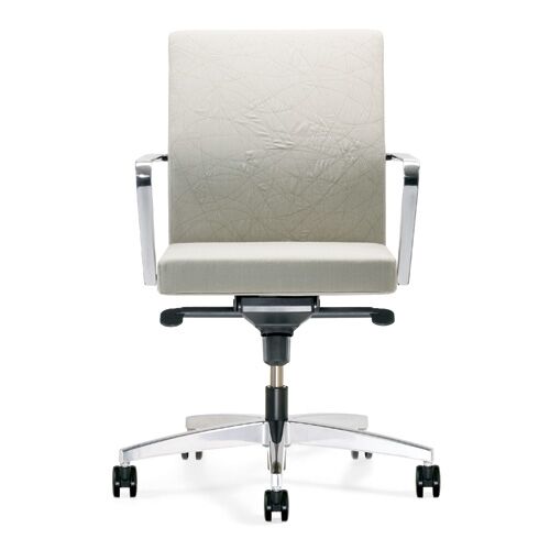 Reeve is an elegant office or conference chair with a simple, casually formal aesthetic. Two back heights (mid back and low back), 3 arm styles (urethane, aluminum, and aluminum with upholstered arm sleeve), and two base finishes (aluminum or black powder coat) can be specified.