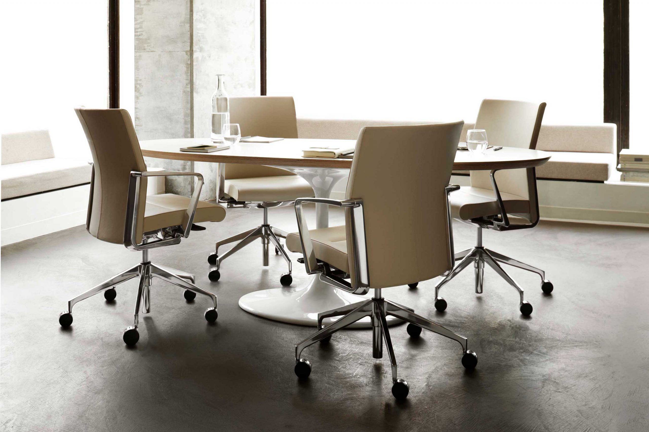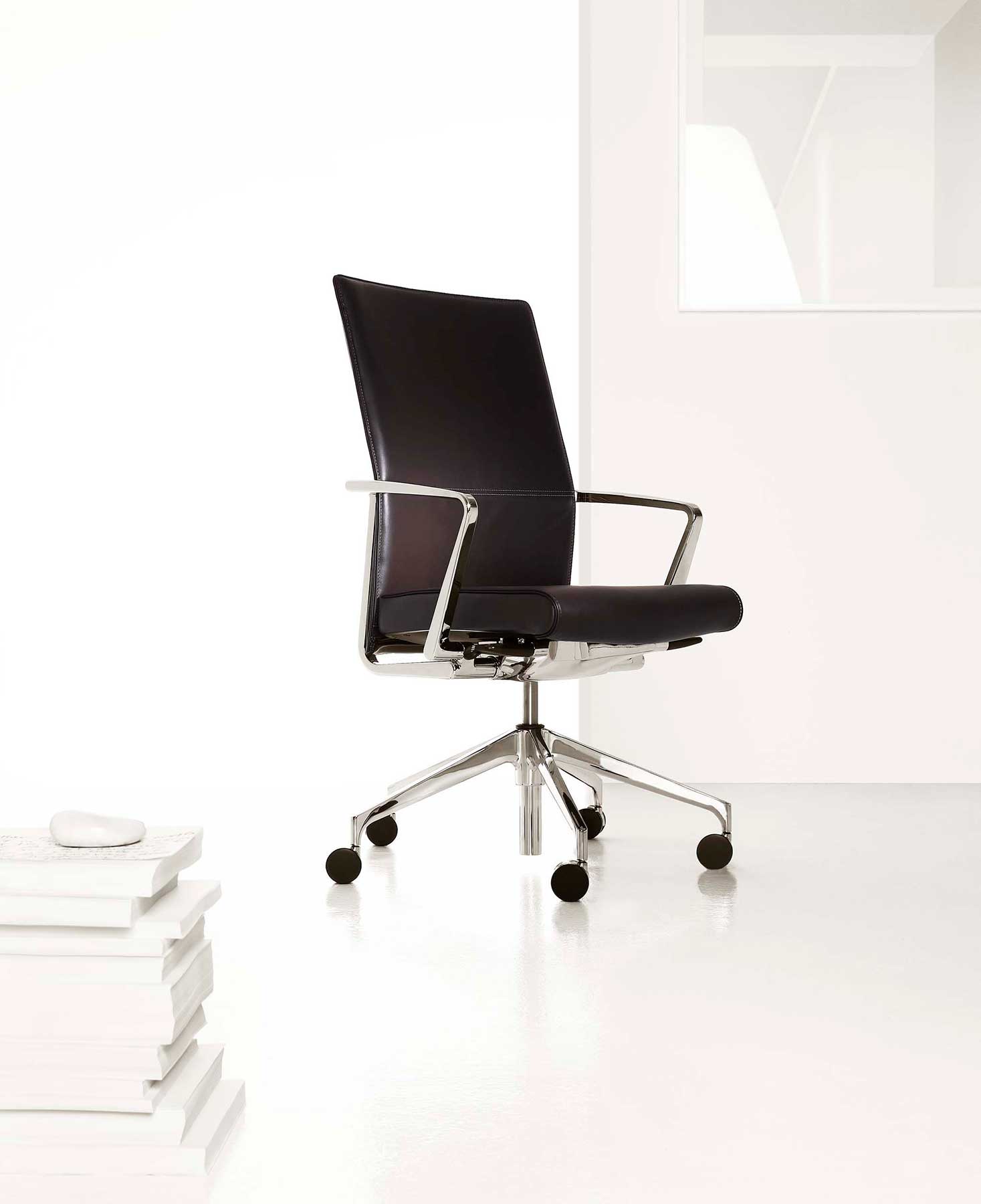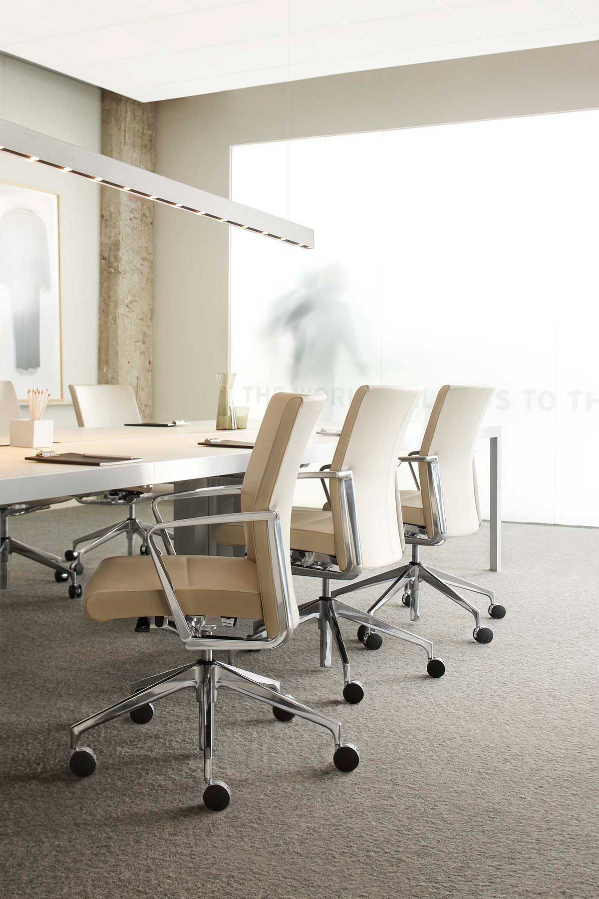 SAVA® is a product designed to perform many different functions, depending on the specification. 4-paddle controls with fixed arms work well in the executive office. 4-paddle controls with height-adjustable arms are more suitable to a heads-down, computer-intensive environment. For conference, the two 2-paddle control with fixed arms might be ideal. The line’s flexibility permits the specifier to address one particular area or the entire office. Just as different components can be combined for a broad range of applications, so can the upholstery style be selected for different tastes. Euro is rather relaxed. Thin Pad makes an executive expression. The Standard upholstery means business without pretension. All in all, SAVA smoothly addresses the broad spectrum of requirements the modern office demands. It’s a multi-purpose, multi-tasking product line that always feels coherent and singular.