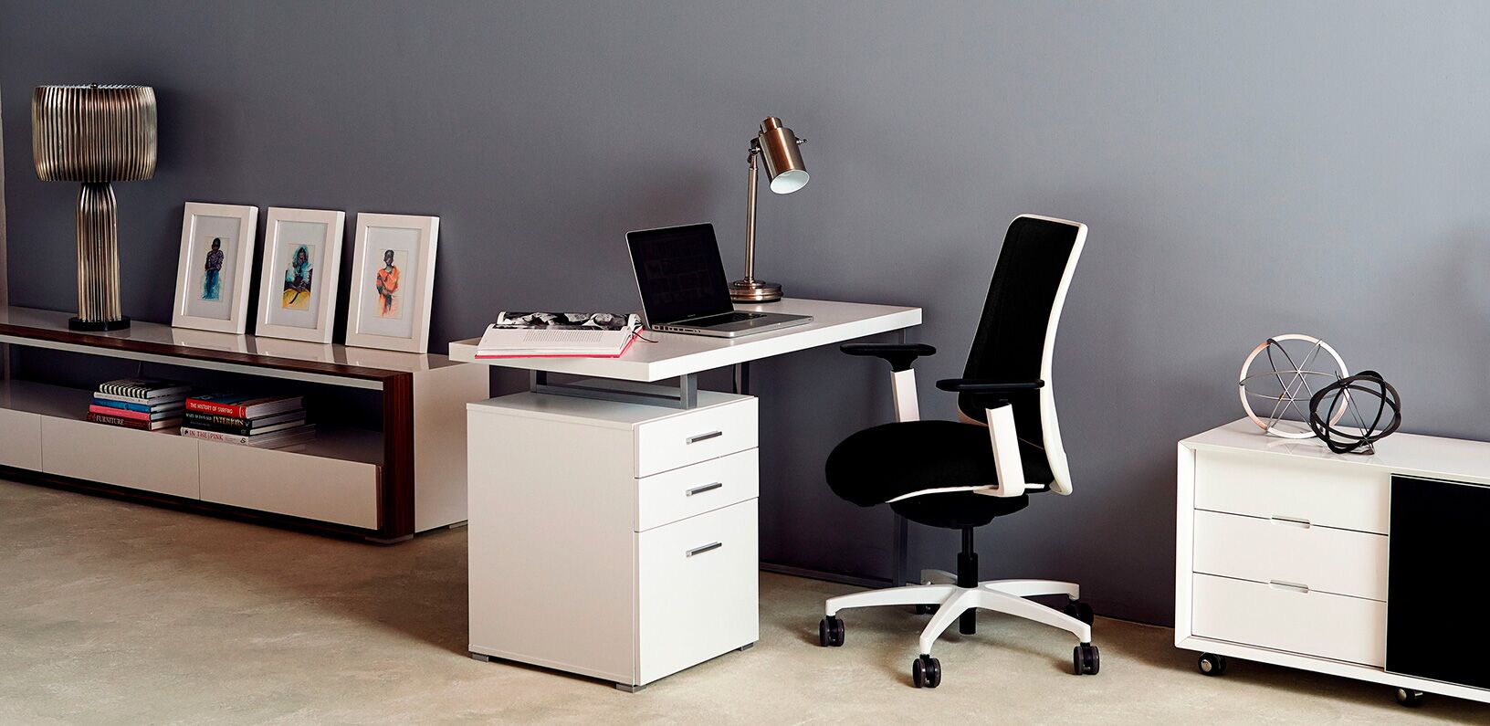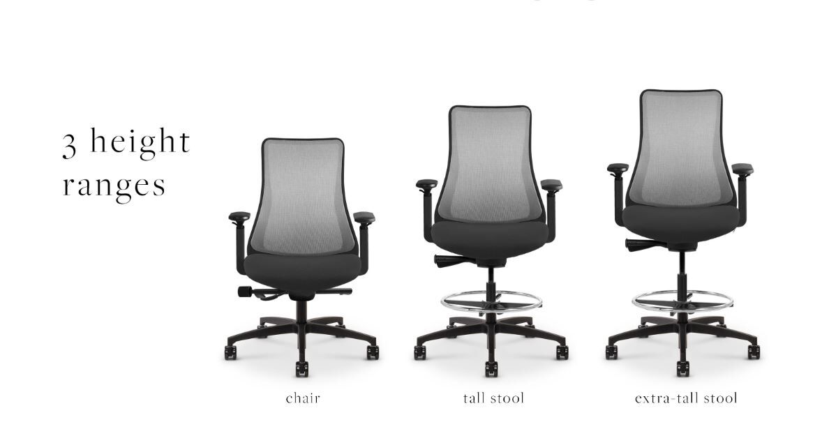 Bases: five-star bases available in black nylon standard on black frames, white nylon standard on white frames, polished aluminum & brushed aluminum.
