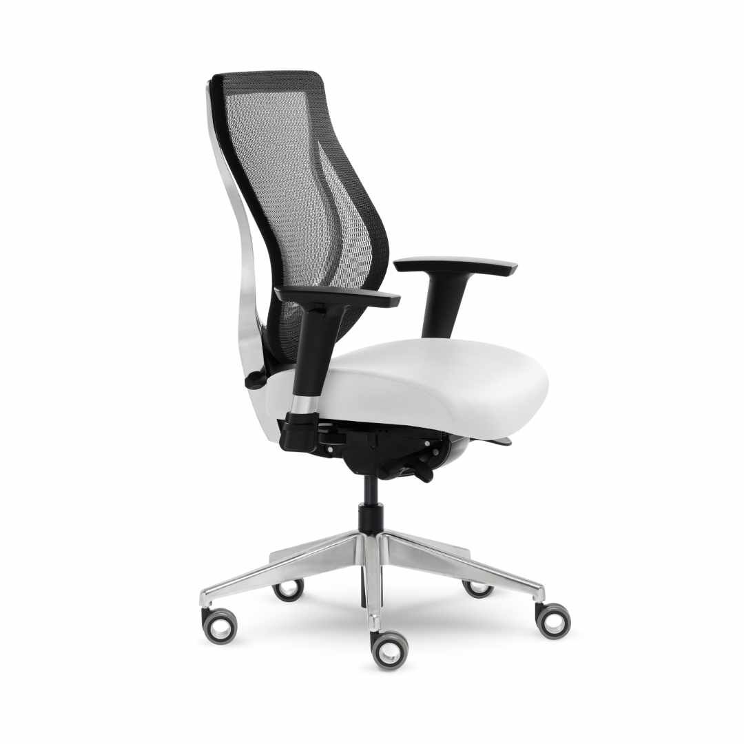 Upholstered seat with a mesh back, innovative back suspension, deluxe synchro tilt mechanism, back height adjustment, width adjust optional on all models with task arms, TVO base with 65mm casters. Conference arms come with a chrome accent.
