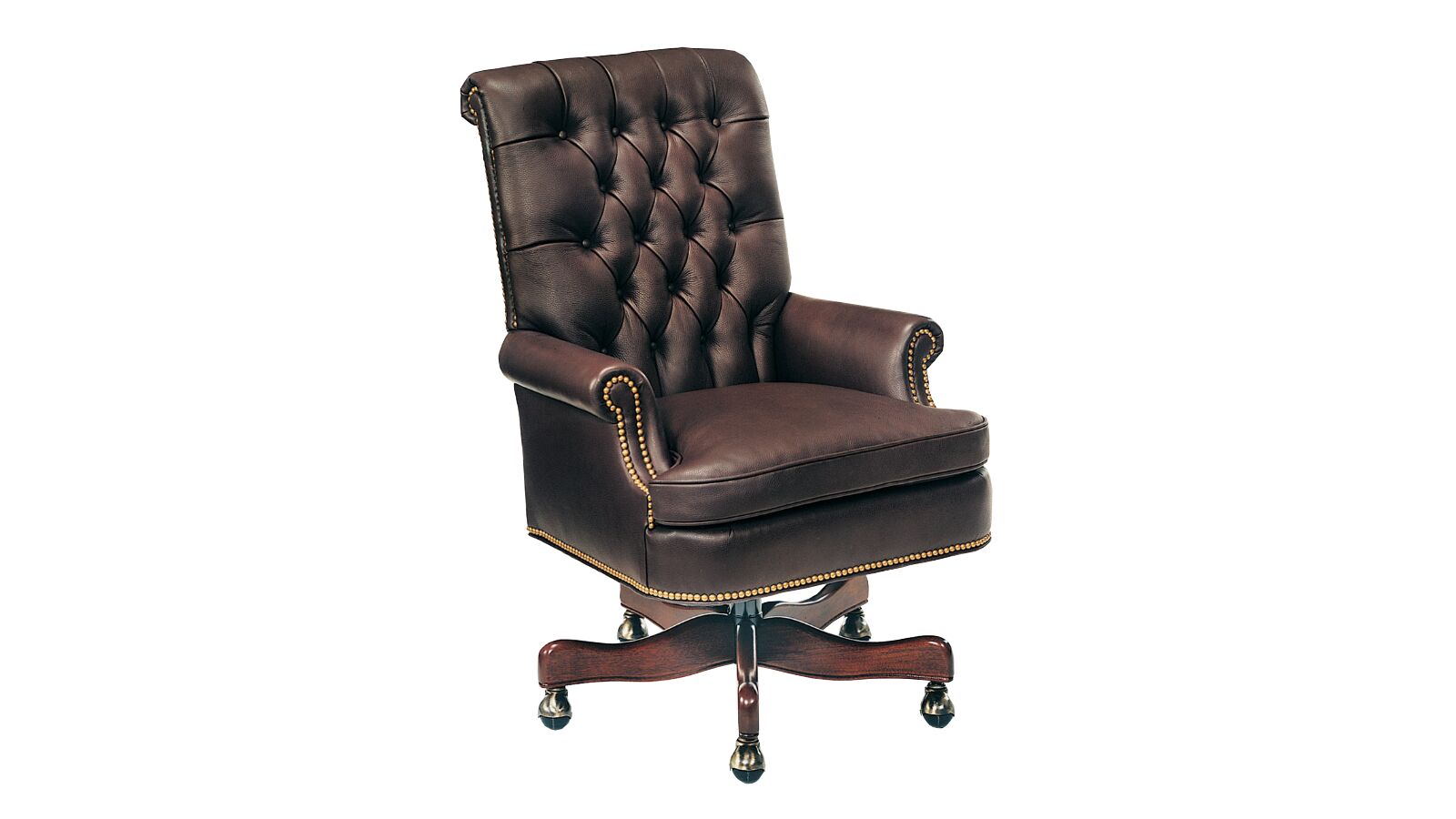 The Berwind Swivel Tilt Chair by Cabot Wrenn offers a blend of comfort and classic design, making it a refined addition to executive offices and conference rooms. The chair features a manual mechanism with a 3-inch adjustable height range and is showcased in Dream Molasses with a Mahogany Distressed finish. Standard features include Nailhead Trim A and Base A. The Berwind Swivel Tilt Chair is available in various finishes and materials, allowing for customization to suit diverse interior styles.