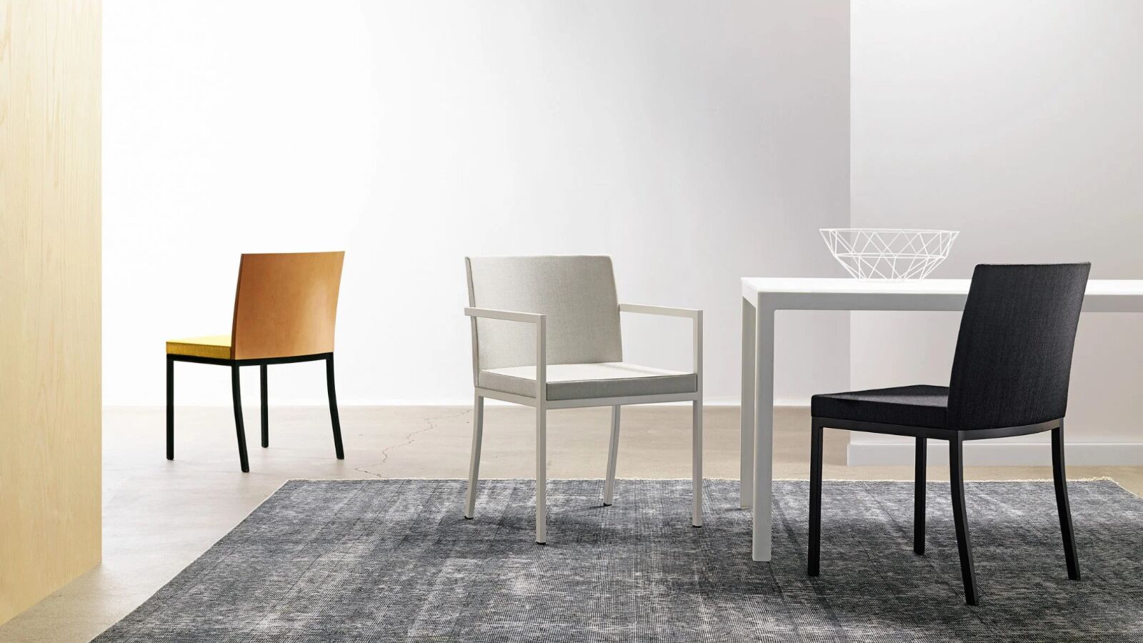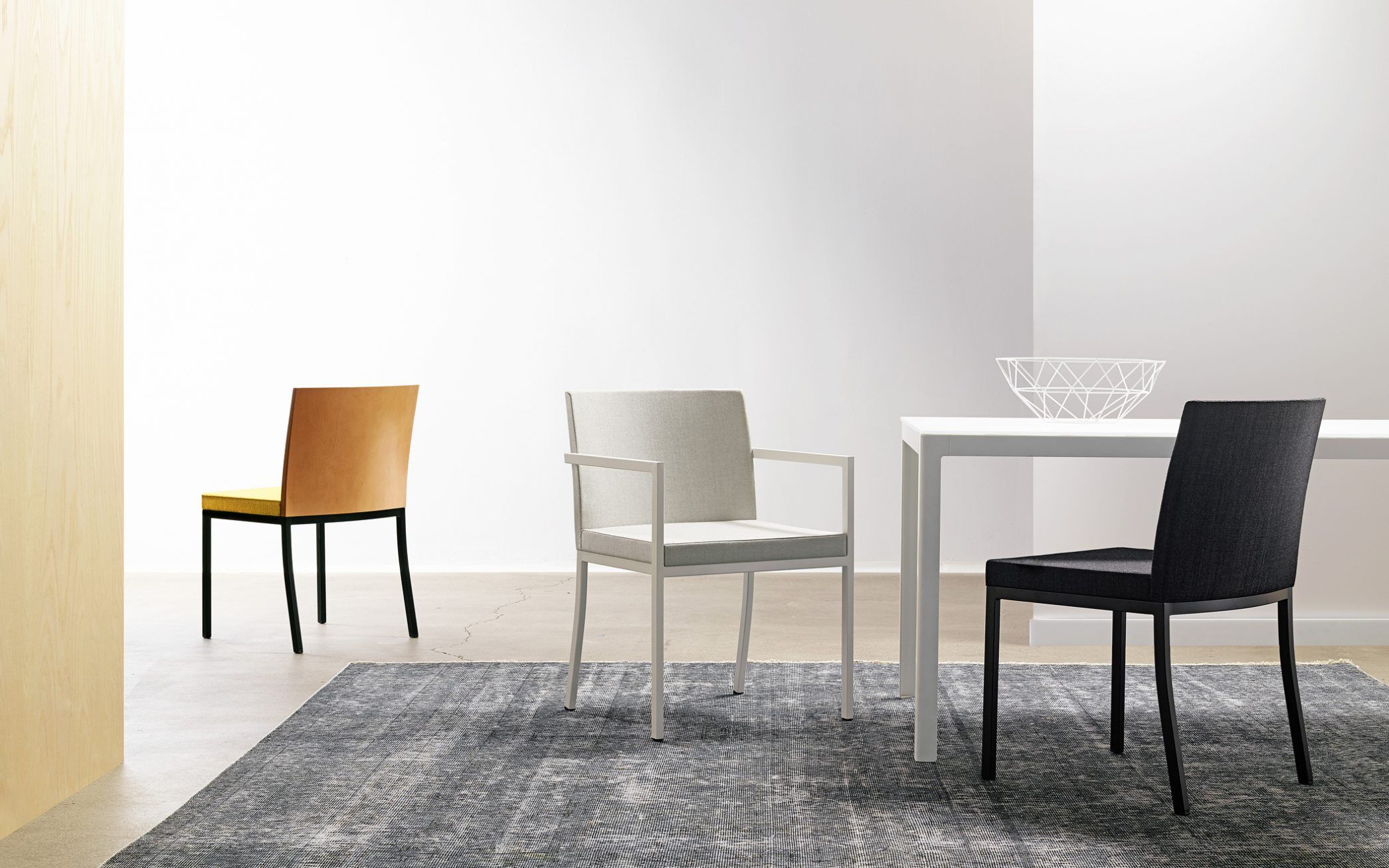 Mark 2 is a formal guest chair, a stacker, and a stool whose rectilinear frame conveys pure elegance. Superior craftsmanship and simple lines belie Mark 2’s utility. Despite its refinement, Mark 2 is a practical, versatile product that is available with or without arms; in bright chrome, satin chrome, or painted finish; with either upholstered or wood back. No matter the model, Mark 2 gracefully balances its clean retro profile with contemporary functionality.