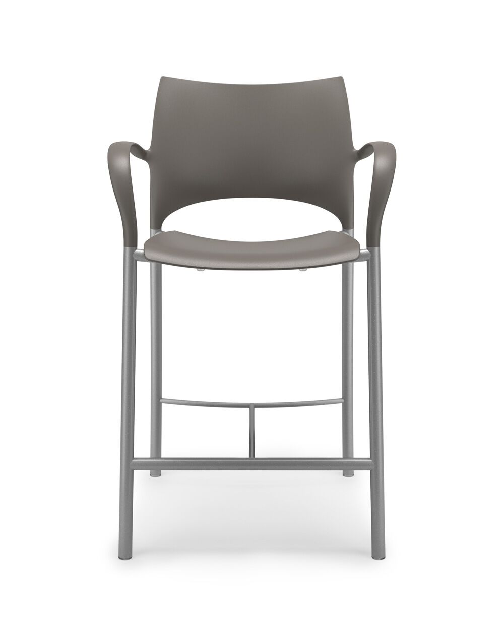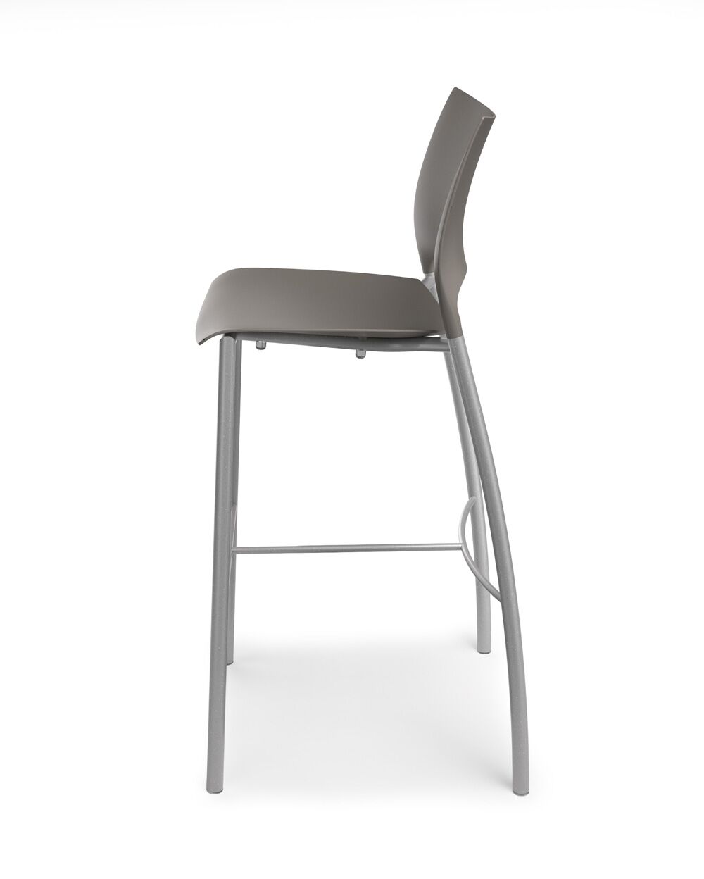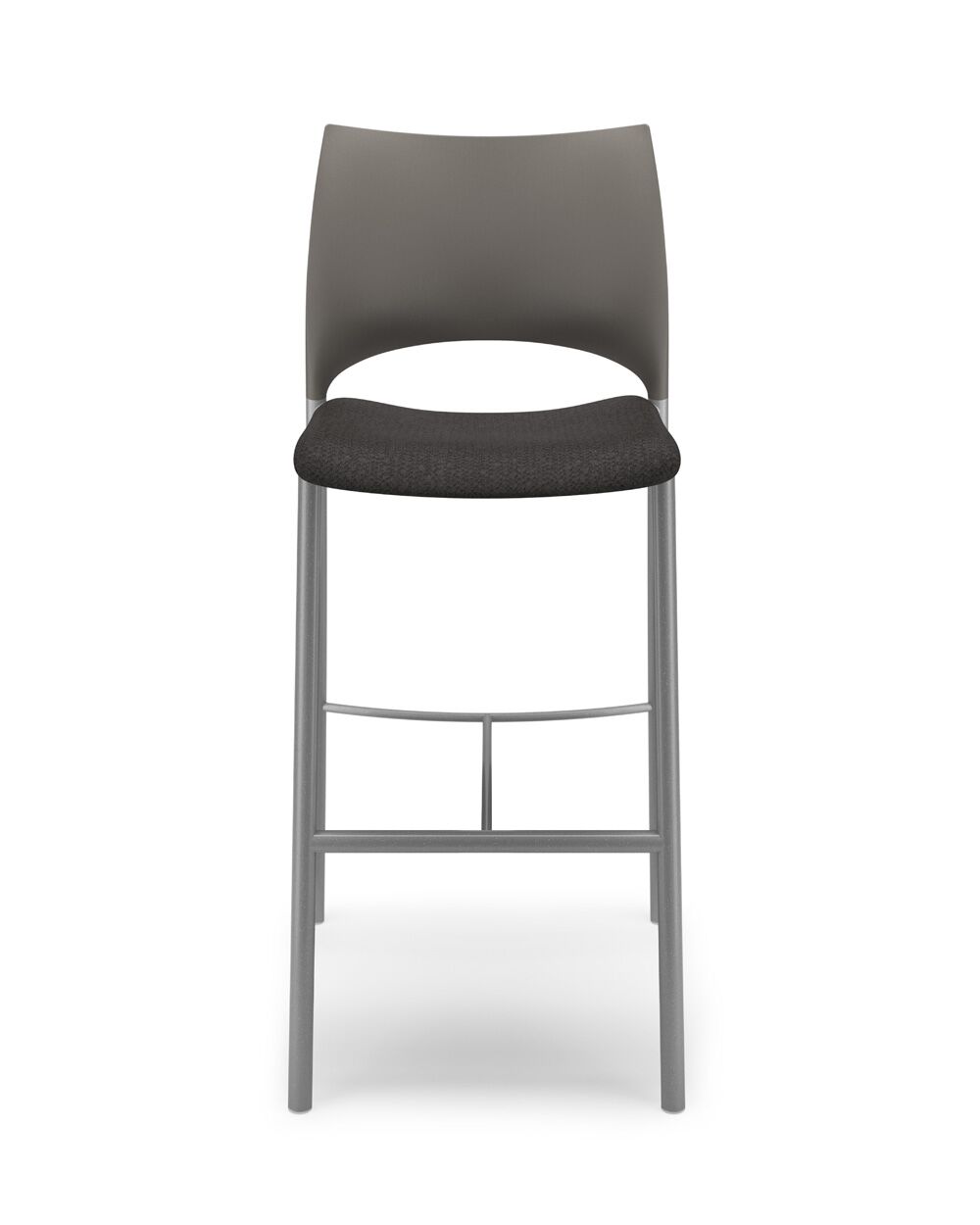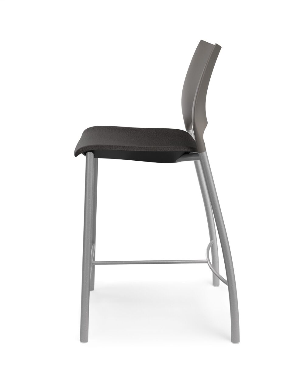 Loon, whose graceful arcs and sculptural form were inspired by nature, is a side or stacking chair, available in multiple styles and options. The chairs, counterstools, and barstools, can be specified with a simple molded nylon seat and back, with an upholstered seat and nylon back, or with an upholstered seat and upholstered back pad. All are available with and without arms, and chairs can add casters, ganging, or tablet arm options. The nylon shell is available in 9 standard colours, the steel frame in powder coat or chrome. Chairs stack 6 on the floor and 10 on the dolly. Five tables with round or square laminate tops are available in 2 heights.