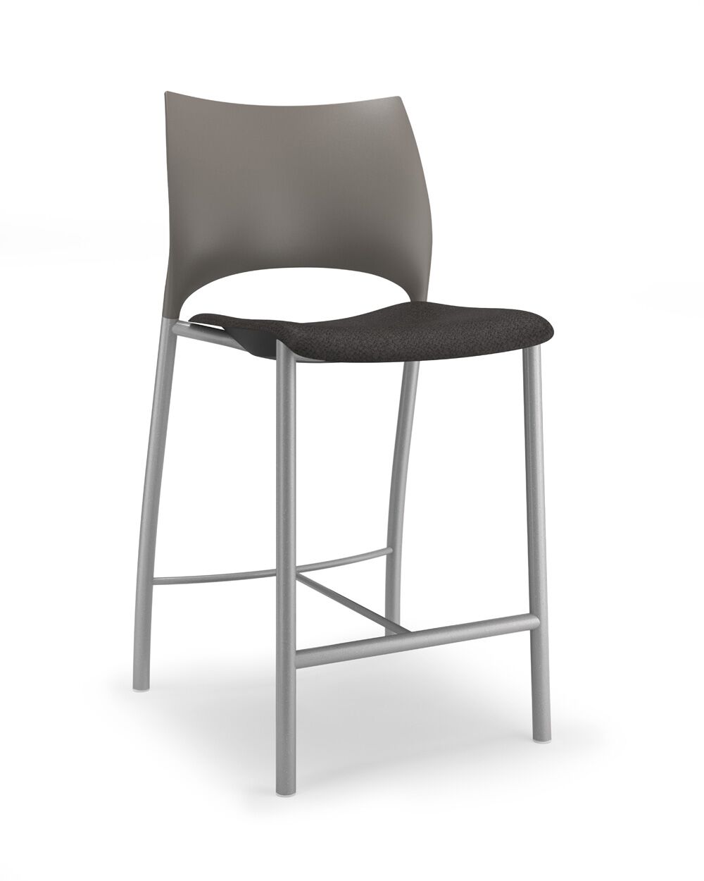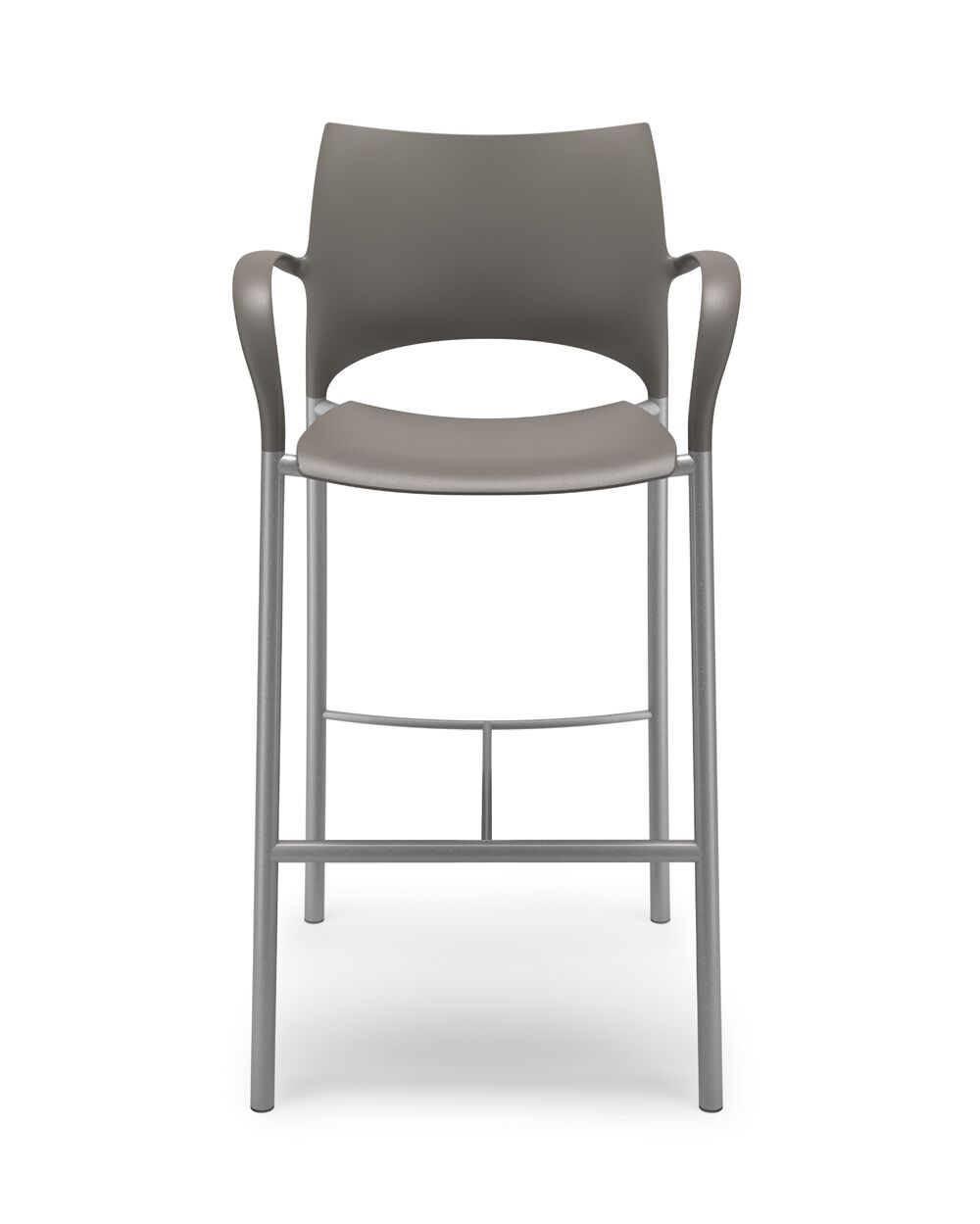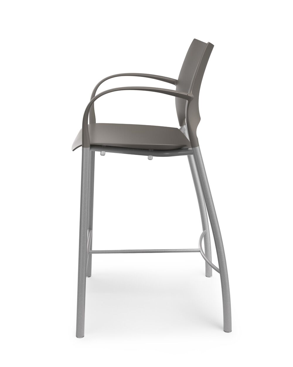 Loon, whose graceful arcs and sculptural form were inspired by nature, is a side or stacking chair, available in multiple styles and options. The chairs, counterstools, and barstools, can be specified with a simple molded nylon seat and back, with an upholstered seat and nylon back, or with an upholstered seat and upholstered back pad. All are available with and without arms, and chairs can add casters, ganging, or tablet arm options. The nylon shell is available in 9 standard colours, the steel frame in powder coat or chrome. Chairs stack 6 on the floor and 10 on the dolly. Five tables with round or square laminate tops are available in 2 heights.