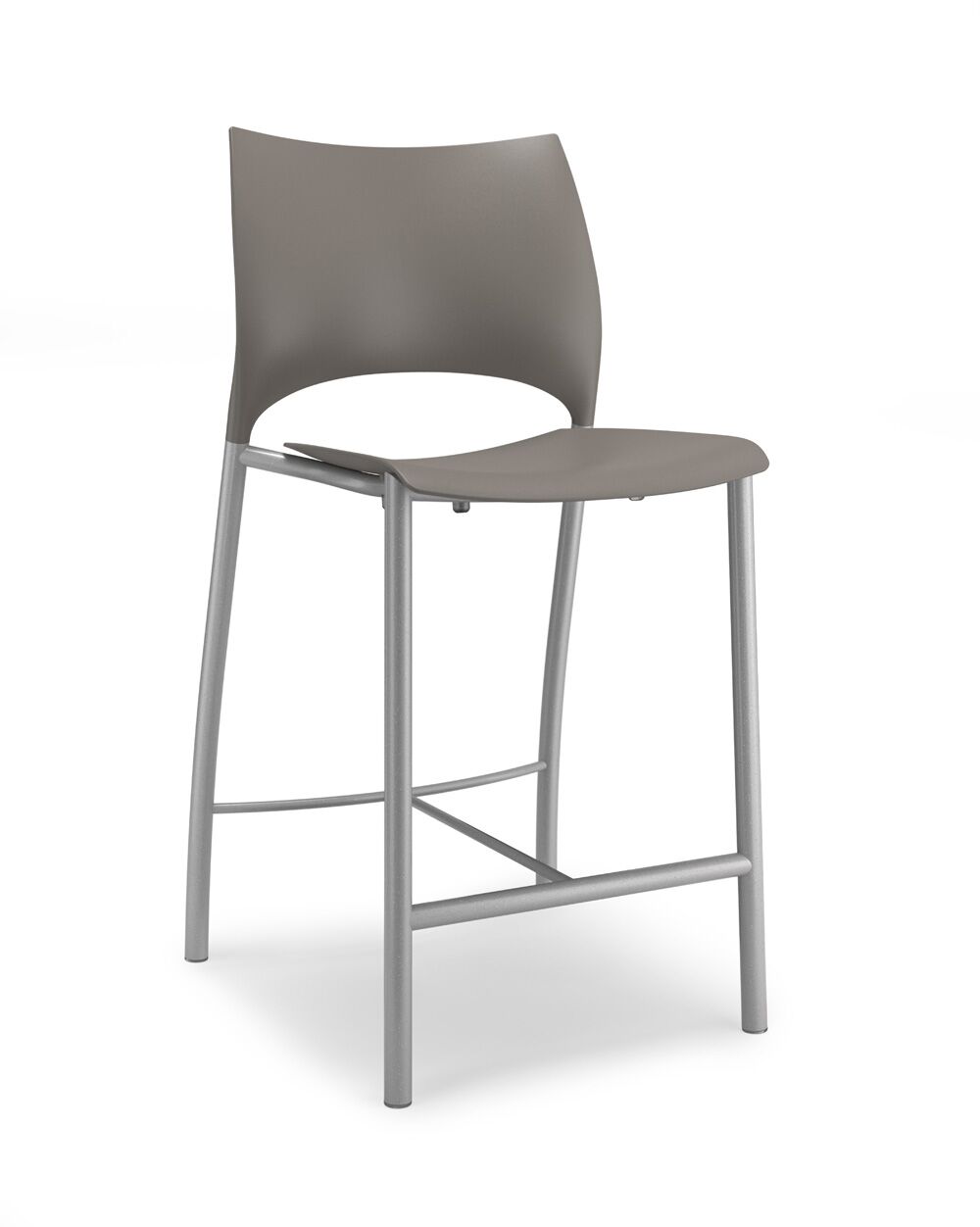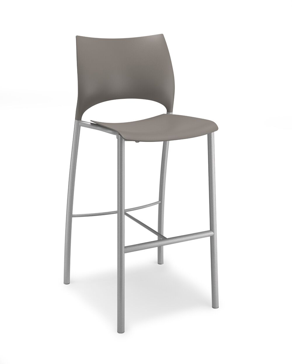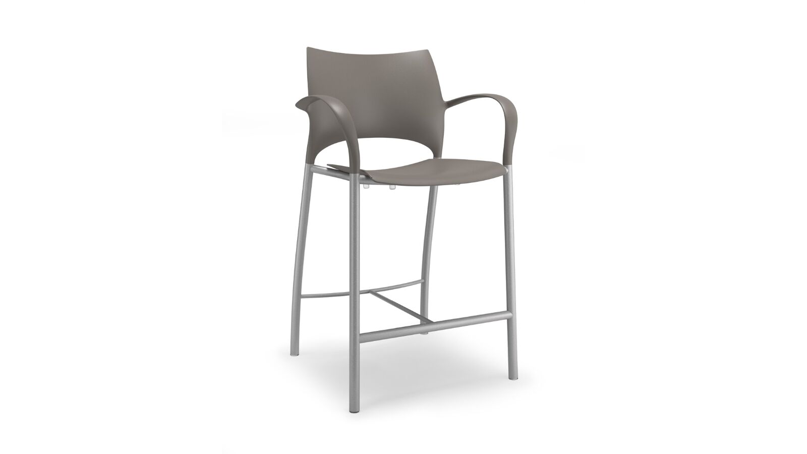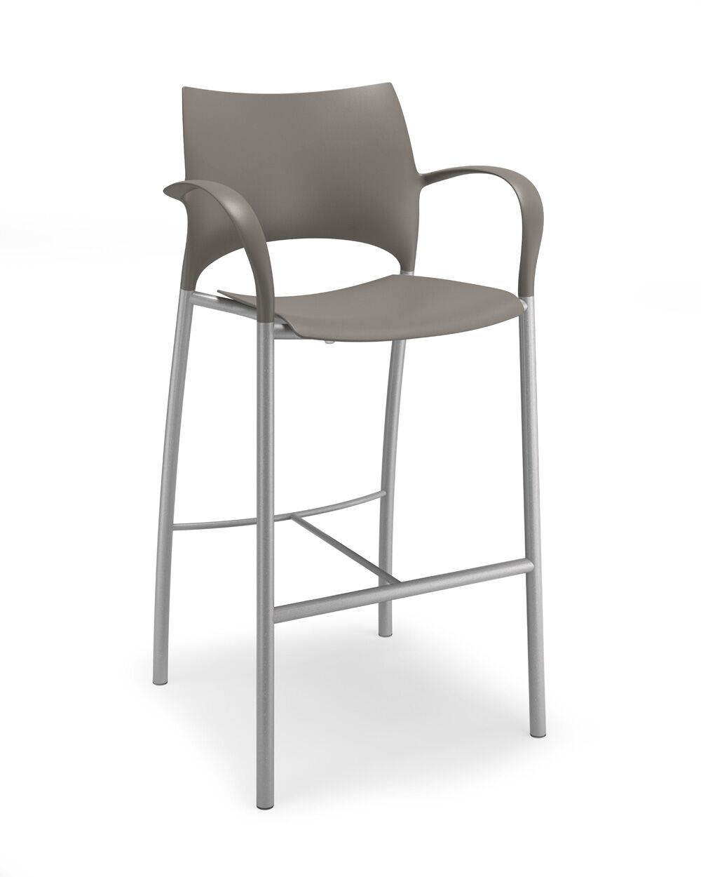 Loon, whose graceful arcs and sculptural form were inspired by nature, is a side or stacking chair, available in multiple styles and options. The chairs, counterstools, and barstools, can be specified with a simple molded nylon seat and back, with an upholstered seat and nylon back, or with an upholstered seat and upholstered back pad. All are available with and without arms, and chairs can add casters, ganging, or tablet arm options. The nylon shell is available in 9 standard colours, the steel frame in powder coat or chrome. Chairs stack 6 on the floor and 10 on the dolly. Five tables with round or square laminate tops are available in 2 heights.