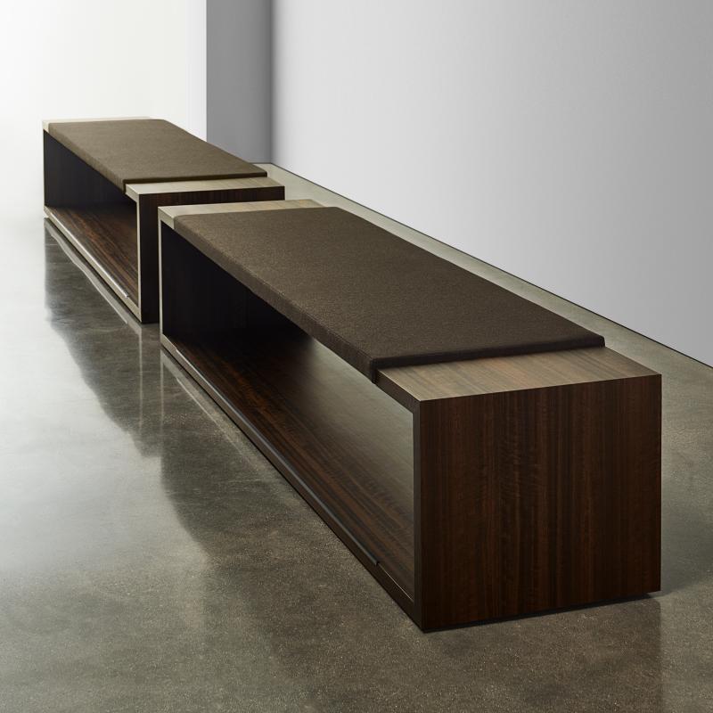 OXER incorporates minimalist lines into a bench seating design that speaks to simplicity and modernism. Each bench includes a gracious seating cushion and convenient table surfaces at each end of the bench. Optional power integration, including wireless charging, result in a clean, nearly invisible technology interface.