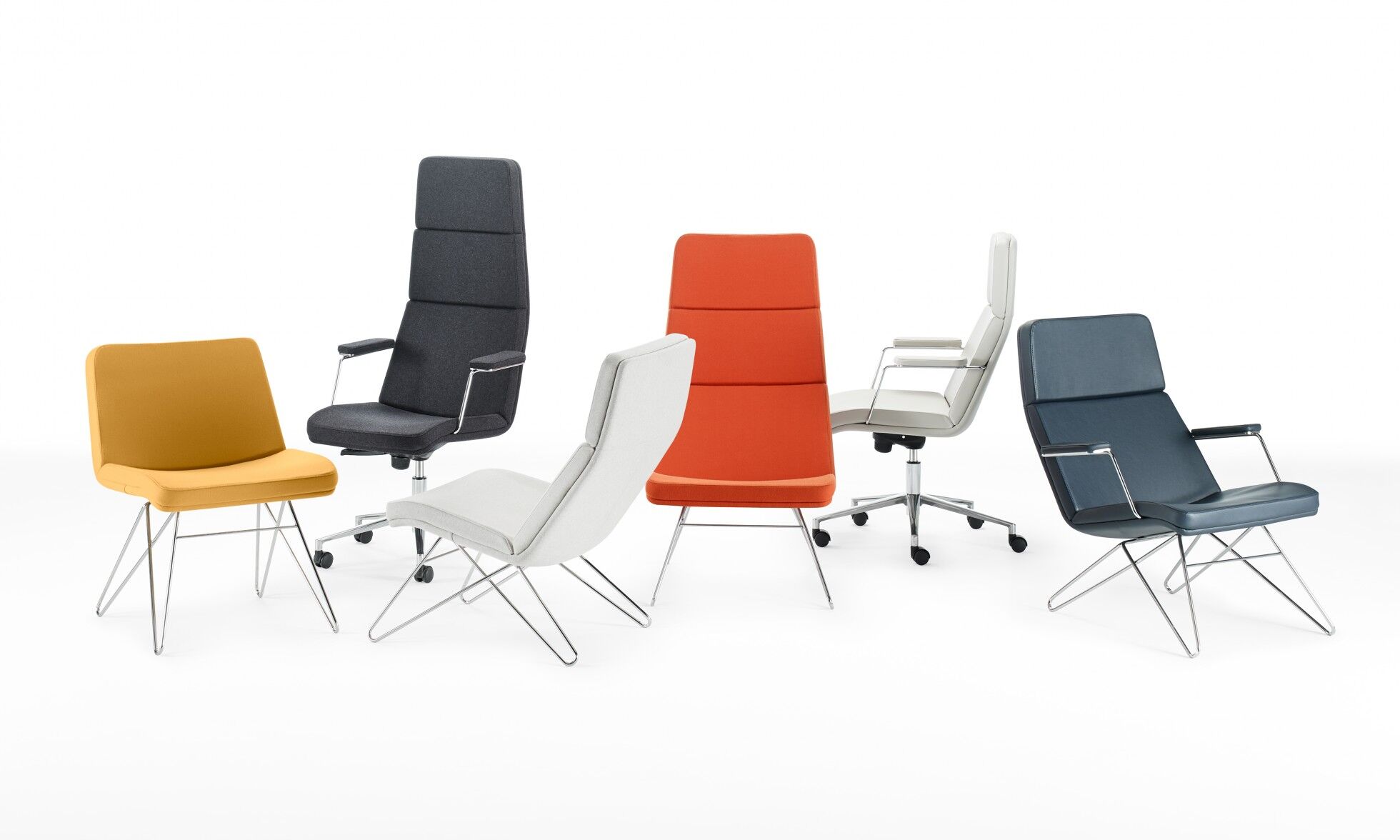 Low back armless only, mid and high back lounge and swivel—wire arms with upholstered arm caps or armless