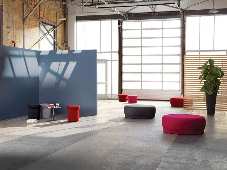 Doko is a collection of poufs and ottomans suited for various informal collaborative situations.