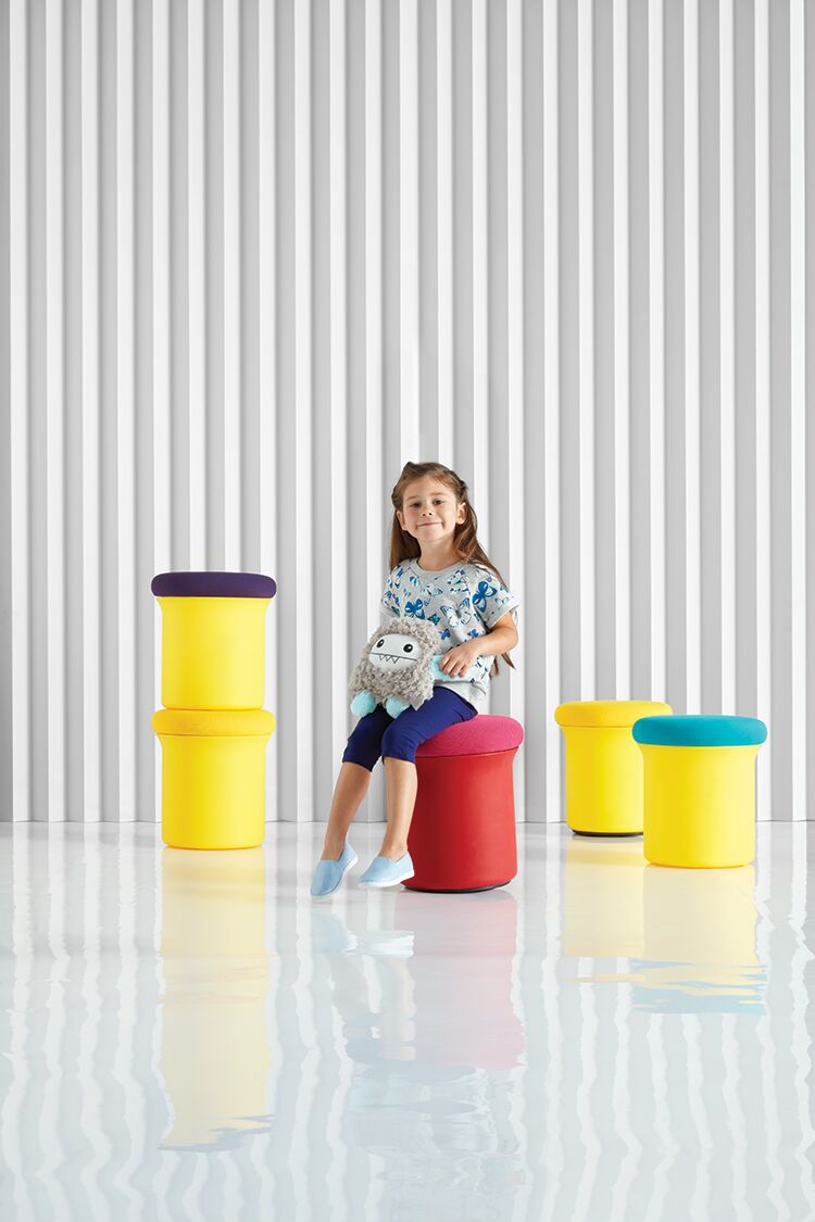 Doko comes in a variety of sizes and heights: a perch at chair height, a small child-sized seat, ottoman-seat height and a large lounge piece available at ottoman height. Durable plastic Dokos are ideal for high traffic areas and a knit covered version provides a cozy, at-home feel. Both versions come with attached cushions for comfort in a round or rounded square shape and the option of an Active Seating base which requires users engage core muscles while sitting.