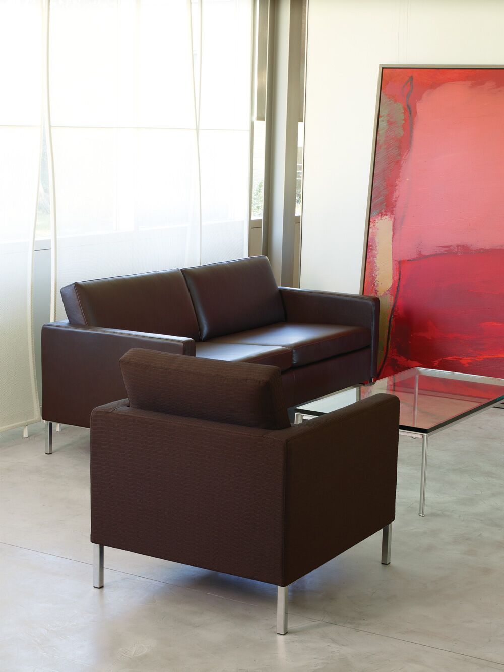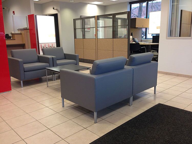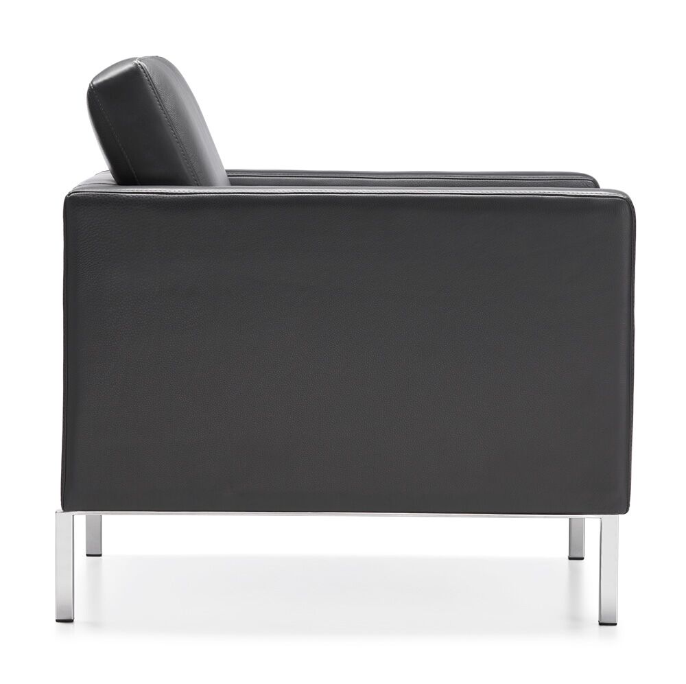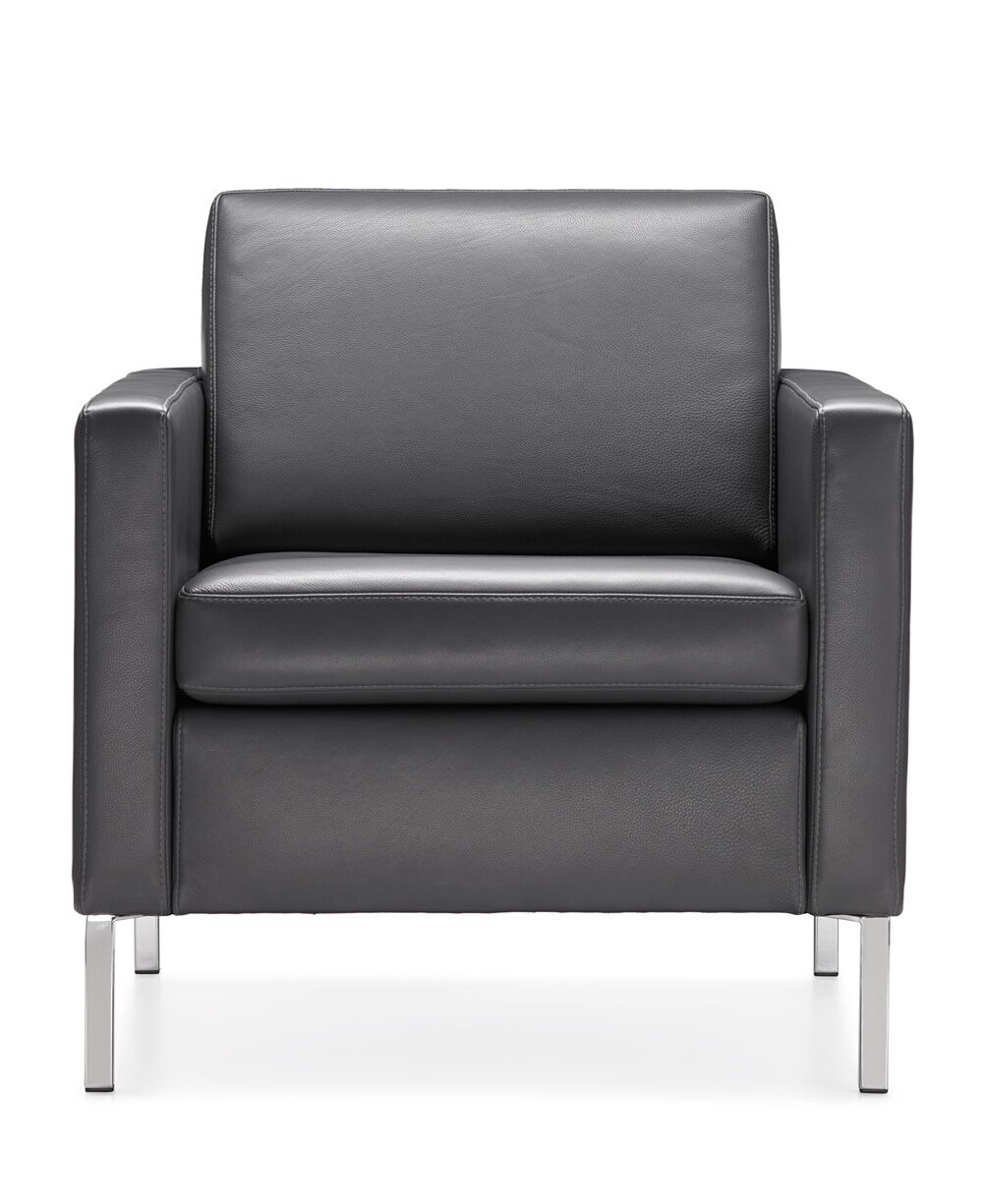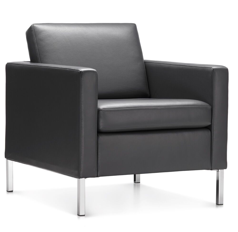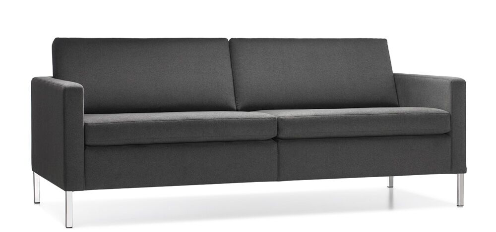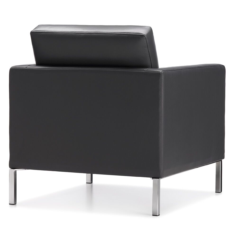 Chair and sofa seats and backs are attached to the overall frames, which makes Doon an excellent choice for public spaces.