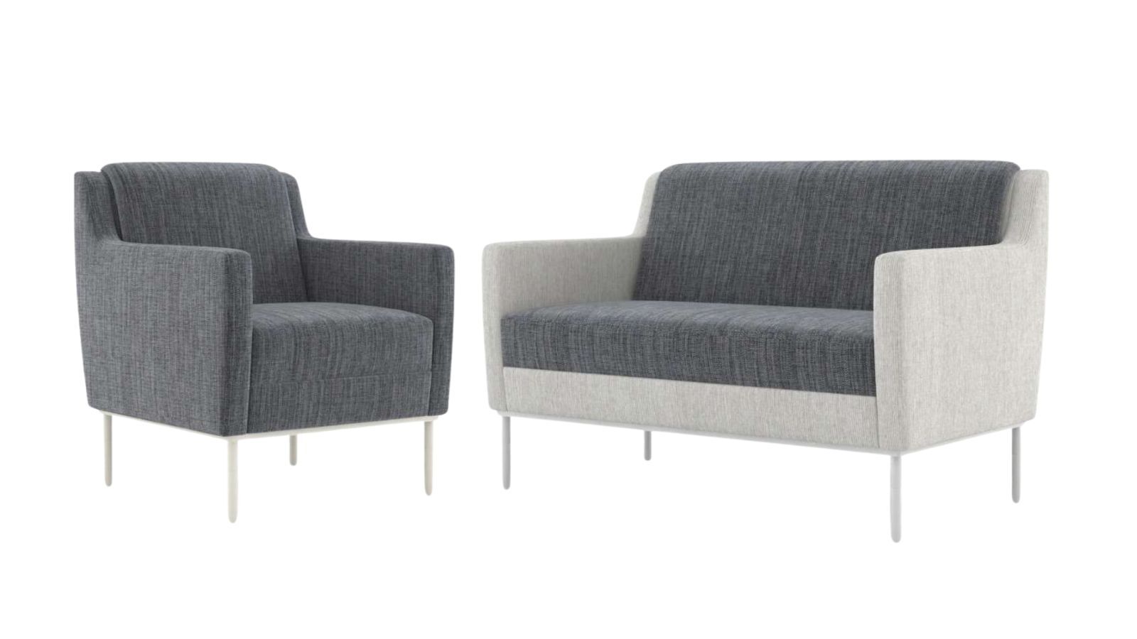 Designed with customizable options, Dess offers a 2" rolled back cushion, brushed aluminum rails and legs, and sleek arm panels aligned with the seat. With a wide range of fabric choices, powder coats, and optional power integration, Dess effortlessly combines form and function for welcoming, versatile seating solutions.