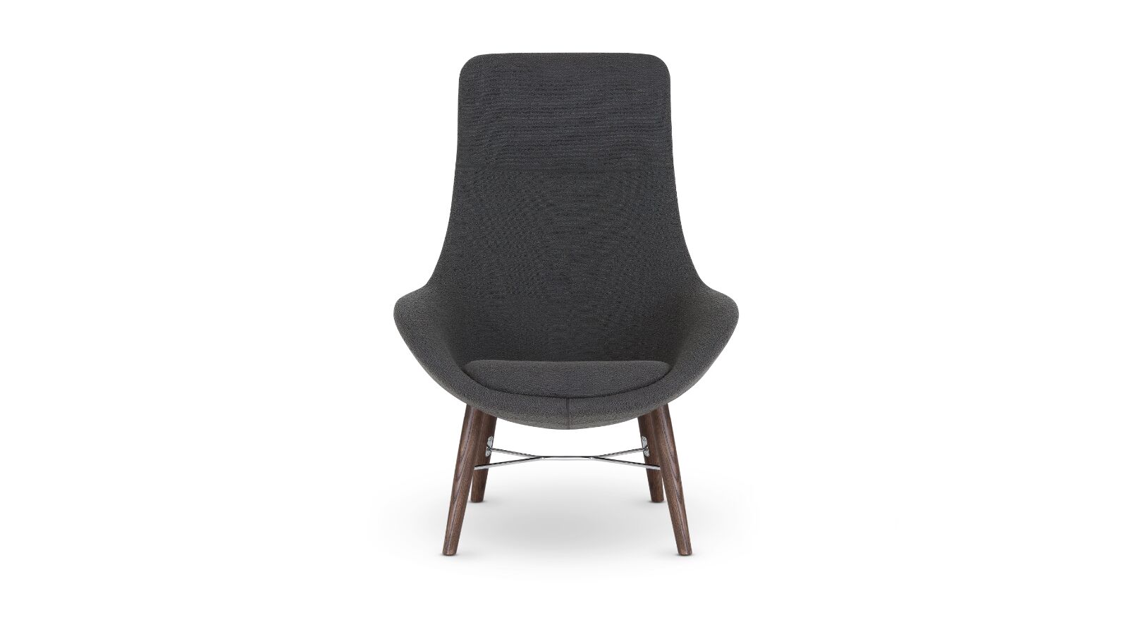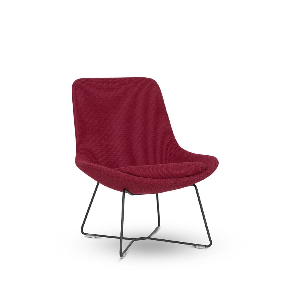 Ponder lounge chairs are available in high, mid and low back with three optional bases: sled, 4-leg wood, and 4-star. A complementing ottoman is available on a sled base.