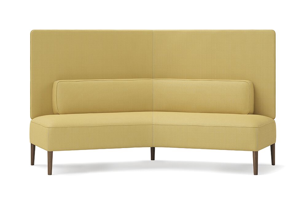 141 is the perfect seat for an intimate one-on-one. The sofa and stylish bench is available as a straight bench of v-shaped, mirroring the magic angle of communication (141 degrees) our bodies are naturally inclined towards. Available with low-back or backless, with optional privacy panel and wooden legs in Walnut or Ash in 10 colors.