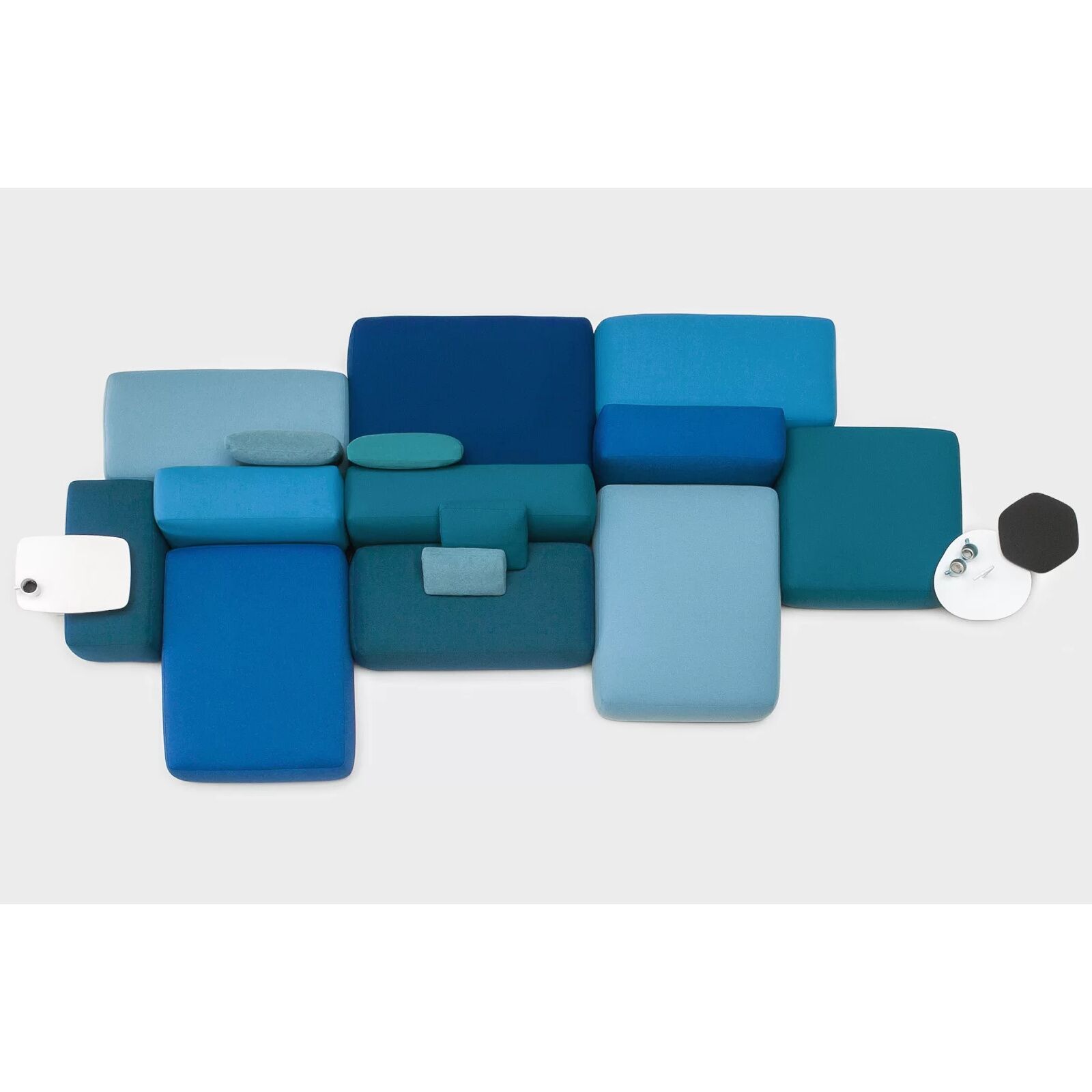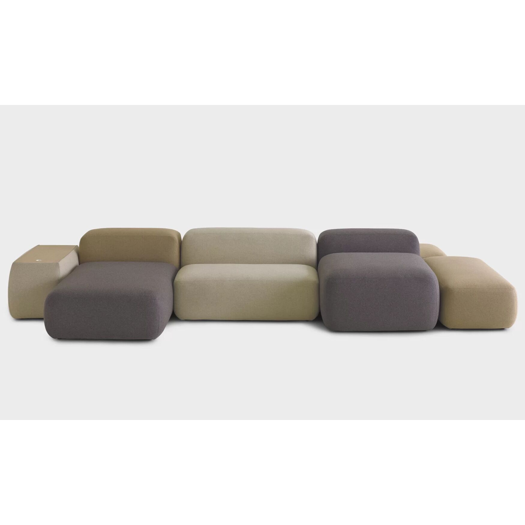 Modular lounge sofa 4 double-sided seating elements with partitions