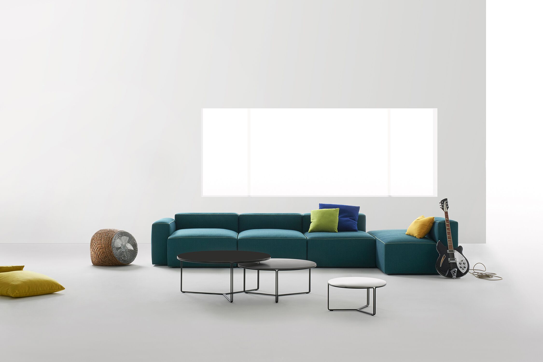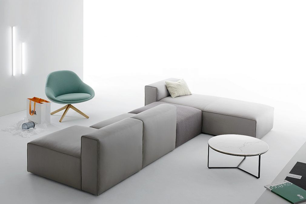 User-reconfigurability is encouraged with the use of a “no-tools”, forked latch ganging system and components that all fit together in many different ways. Chairs incorporate Dymetrol webbing in the seat for added comfort. Cushions are made up of a 50% down and 50% feather blend encasing polyurethane foam for lasting comfort.