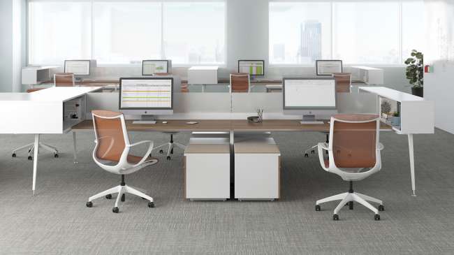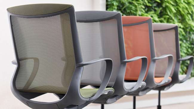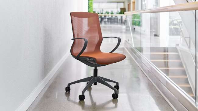 Extensive comfort and affordability should go hand-in-hand, and they do with Pret. The quiet design supports users with a contoured, continuous mesh backing and seat. Its lightweight frame and simple ribbon arms make for quick transitions between workstyles, all the while delivering personalized comfort with an integrated body balance mechanism. With choices of three frame colors and seven mesh options, Pret can subtly serve a space or stand out with a muted punch of color.