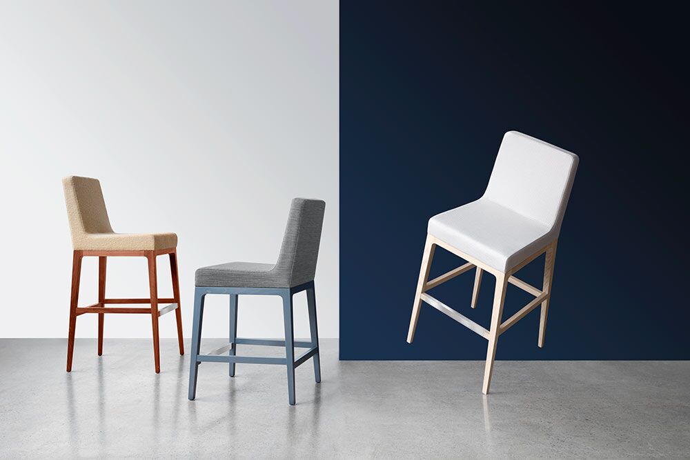 Ruben’s clean lines provide the perfect balance of elegance and softness. The Ruben Collection features numerous seating options: side and lounge chairs, bar and counter stools, and a 3 seater sofa. The collection is rounded out with two occasional tables. Wood features are available in solid Walnut or in Ash wood with 10 color options of finish.