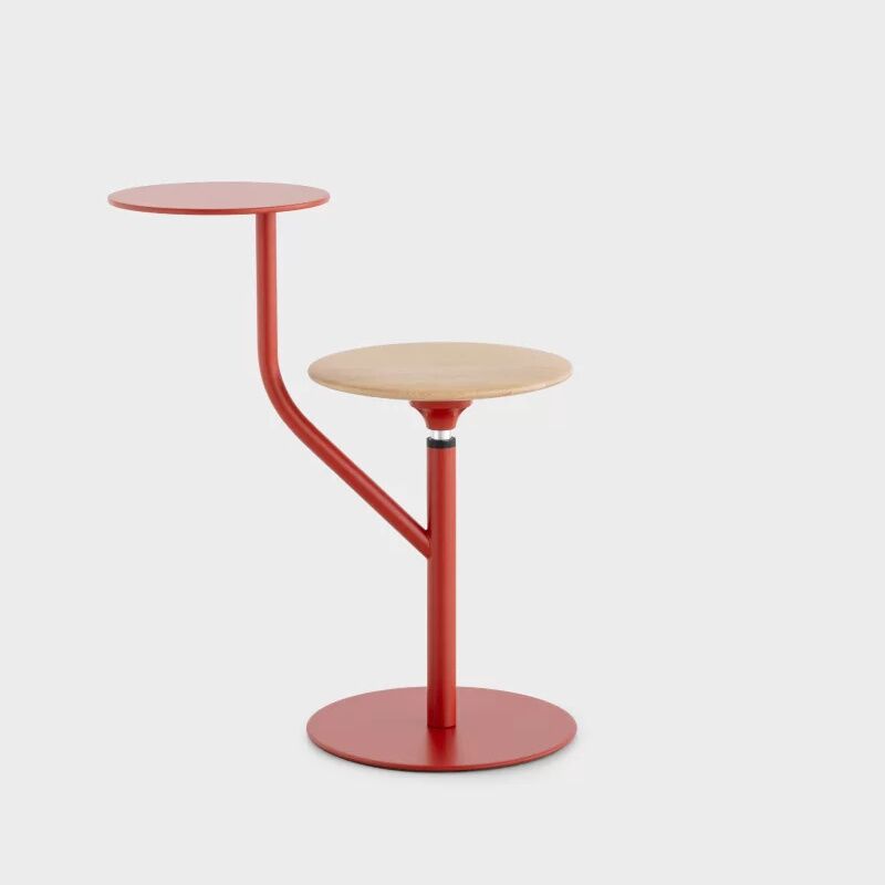 In a single line, dynamic and minimal, two functions, stool and coffee table together. It is called AARON, double “A” in the name, to underline the multi-tasking generosity of a design that limits the overall space and guarantees privacy and relaxation. From a metal stem, a padded seat and a pivoting table top sprout. Functionality and elegance in times of newfound openness and confidentiality. Also available for floor fixing.